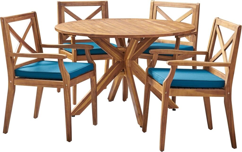 Christopher Knight Home Jordan Outdoor 5 Piece Acacia Wood Dining Set, Teak Finish/Blue