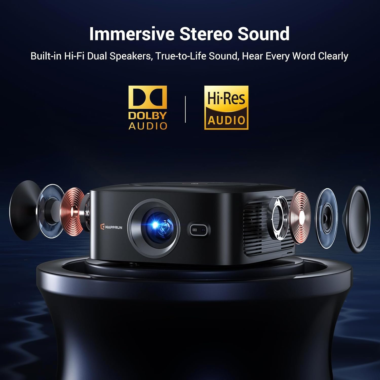 I was looking for a new projector to use as a temporary setup outside or in the house. I like that this projector is quite small and portable so setting it up when I want to use it is pretty easy and straight forward. It is a fairly budget projector, at the time of purchase this projector was listed for $99.99 which is a great value in my opinion. However it does have a few drawbacks worth mentioning.I find the product description title to be a little misleading, it states “HAPPRUN Smart Projector 4K with Wifi”, this is not a 4K projector. It supports 4K as in if you plug in a device that outputs a 4K signal it can still work but the resolution is maximum 1080. And again, I would not expect a sub $100 projector to be a 4K one but the wording is quite misleading. It also states this has Dolby Audio, I have no idea what it takes to be Dolby Audio certified but this does not feel like it. The projector does have a speaker built in but the sound quality from it is not great and has no bass. They do include a Bluetooth speaker in the box which I was not expecting (not mentioned anywhere on the product page), this speaker sounds much better but I would prefer a built in option. If I have to use an external speaker I will probably just use one I already own.But it’s really not all bad, I can live with the shortcomings mentioned above. For the sound it has a 3.5mm so you can easily plug in speakers and not use Bluetooth at all. The remote control is fantastic for a budget projector, it also has dedicated app buttons for Netflix, Youtube, and Amazon Prime Video. For a budget projector, it is quite bright and provides a clear image. It does not have automatic keystone adjustments but the manual setup is easy and quick to use. It has an electric focus so it can easily be adjusted on the fly from the controller. Unfortunately the projector only has an on/off button, no other controls so the remote is required to do anything at all. It has a standard threaded hole underneath, I use a tripod when I set it up for movie night. It has a little flap to adjust the angle if sitting on a table or something but it is quite minimal.Overall I am actually pretty impressed with this projector, it is very budget friendly, has a great remote, built in apps, WiFi, Bluetooth, screen cast capability, HDMI input, and it is quite bright. The out of the box sound solution is not the best but it does include a Bluetooth speaker which can also be plugged in directly with the audio jack.