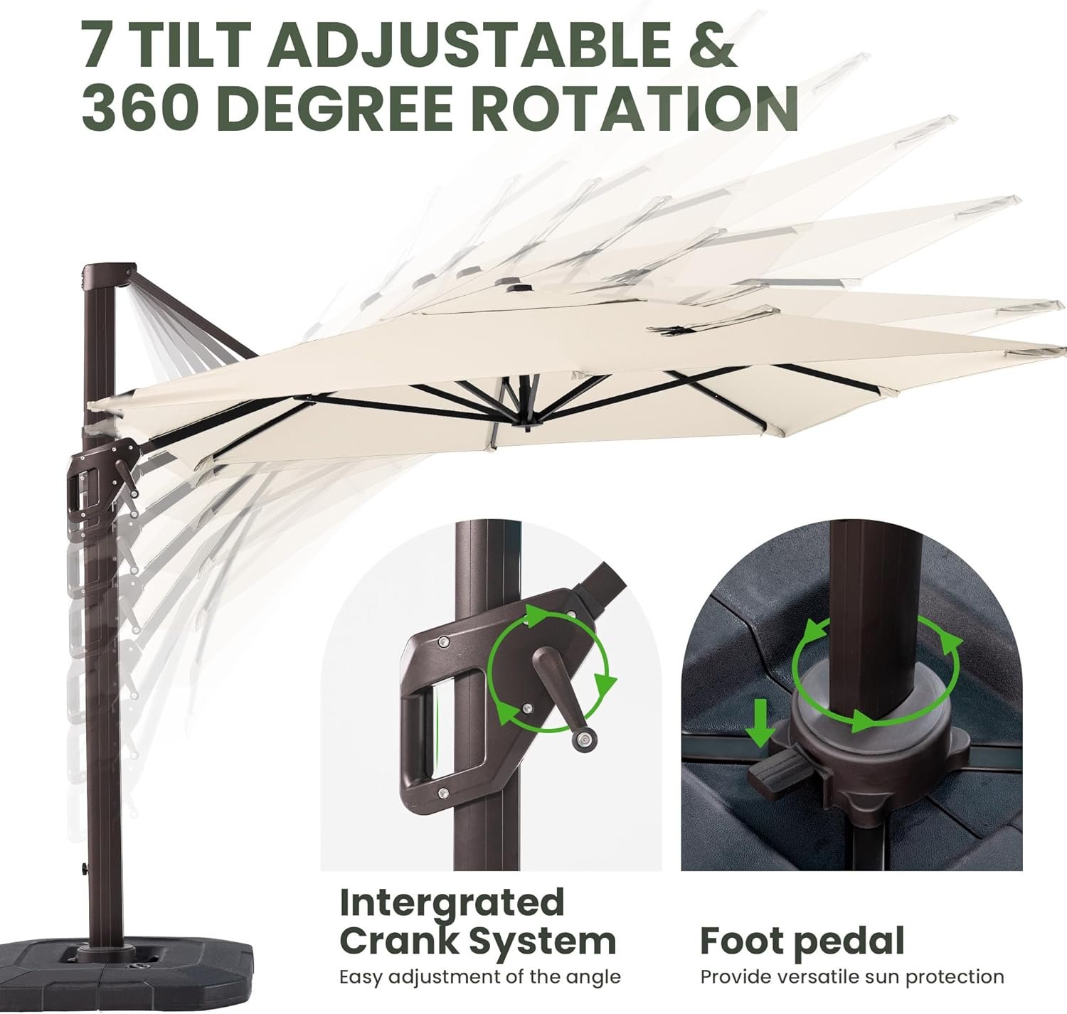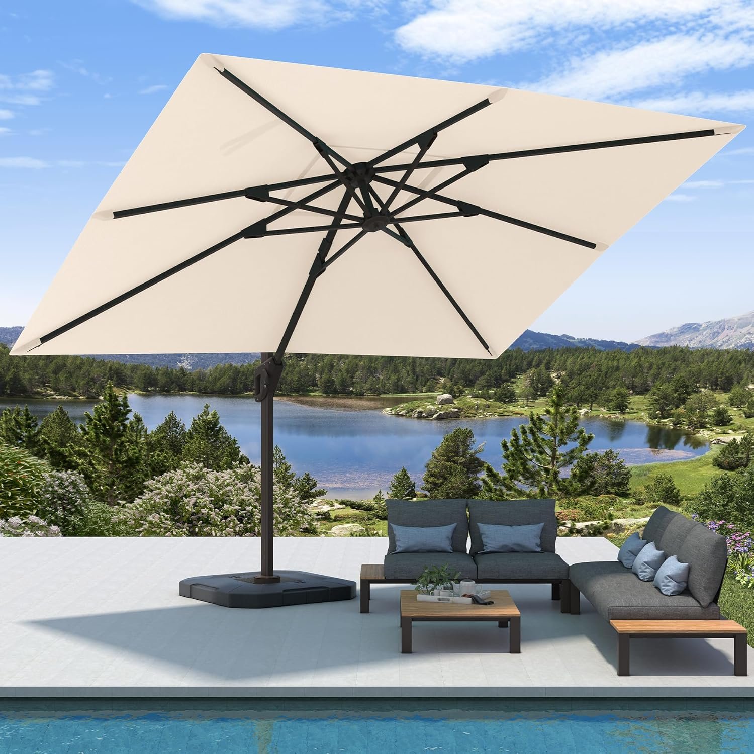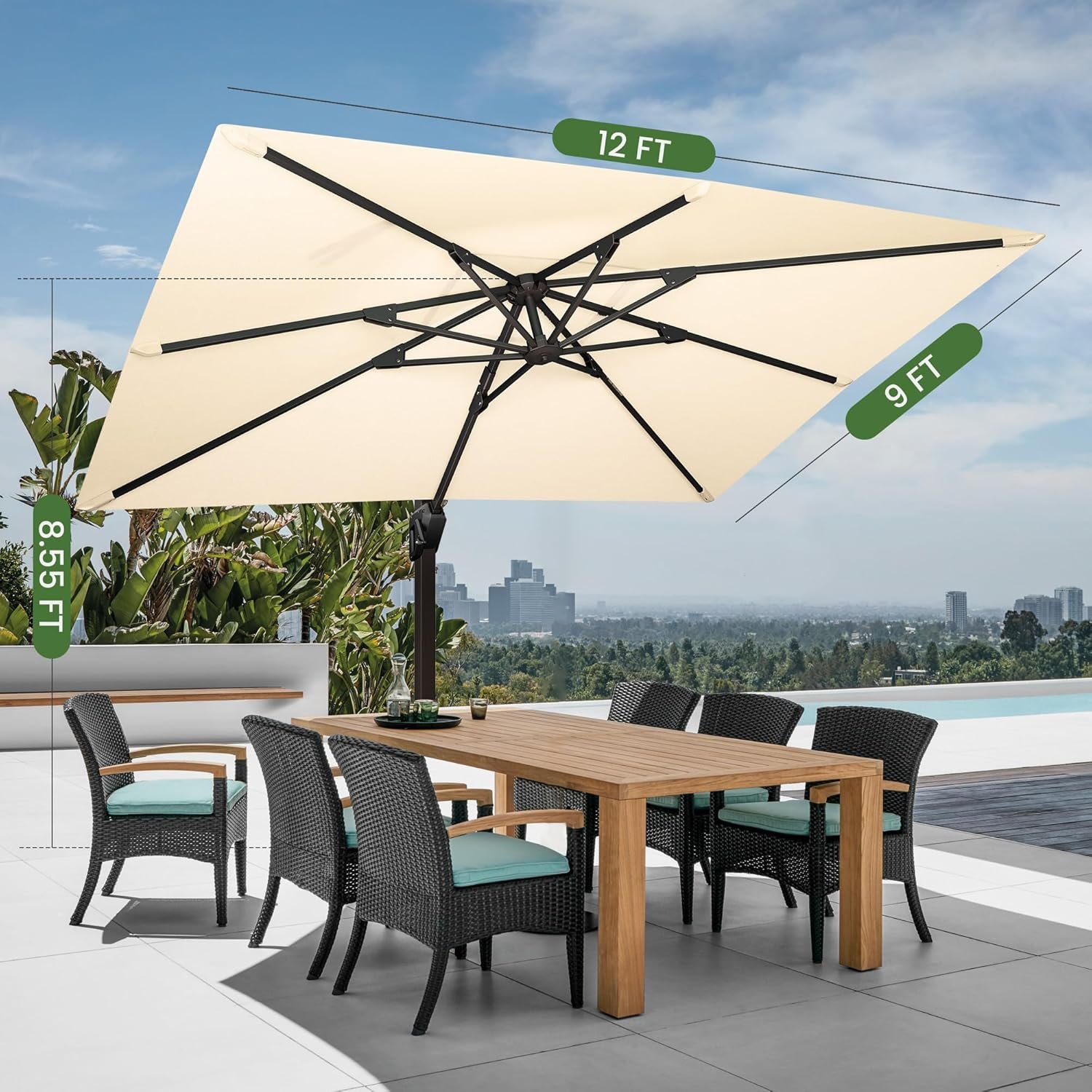 8 reviews for 9′ X 12′ Cantilever Patio Umbrella with Base Included Rectangular Outdoor Large Offset Umbrellas with 7 Tilts Adjustable 360°Rotation for Deck Pool Garden Backyard, Beige