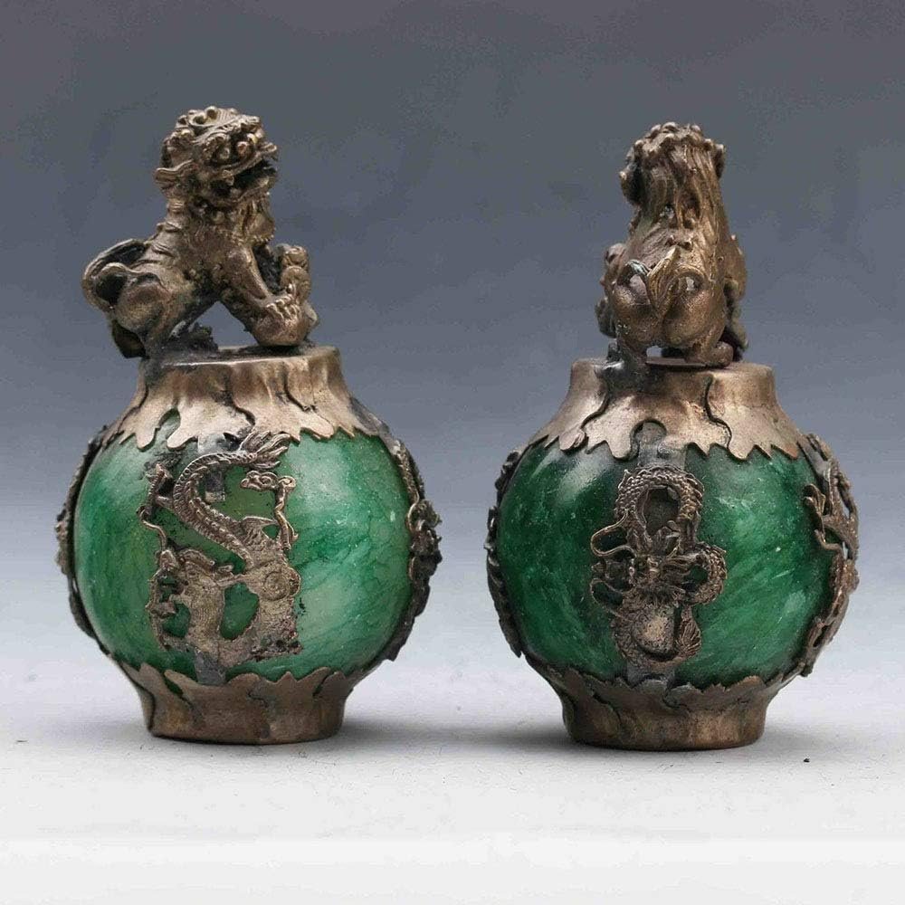 6 reviews for Acxico 1Pairs Exquiste Chinese Silver Dragon Inlaid Jade Hand Carved Lion Statue
