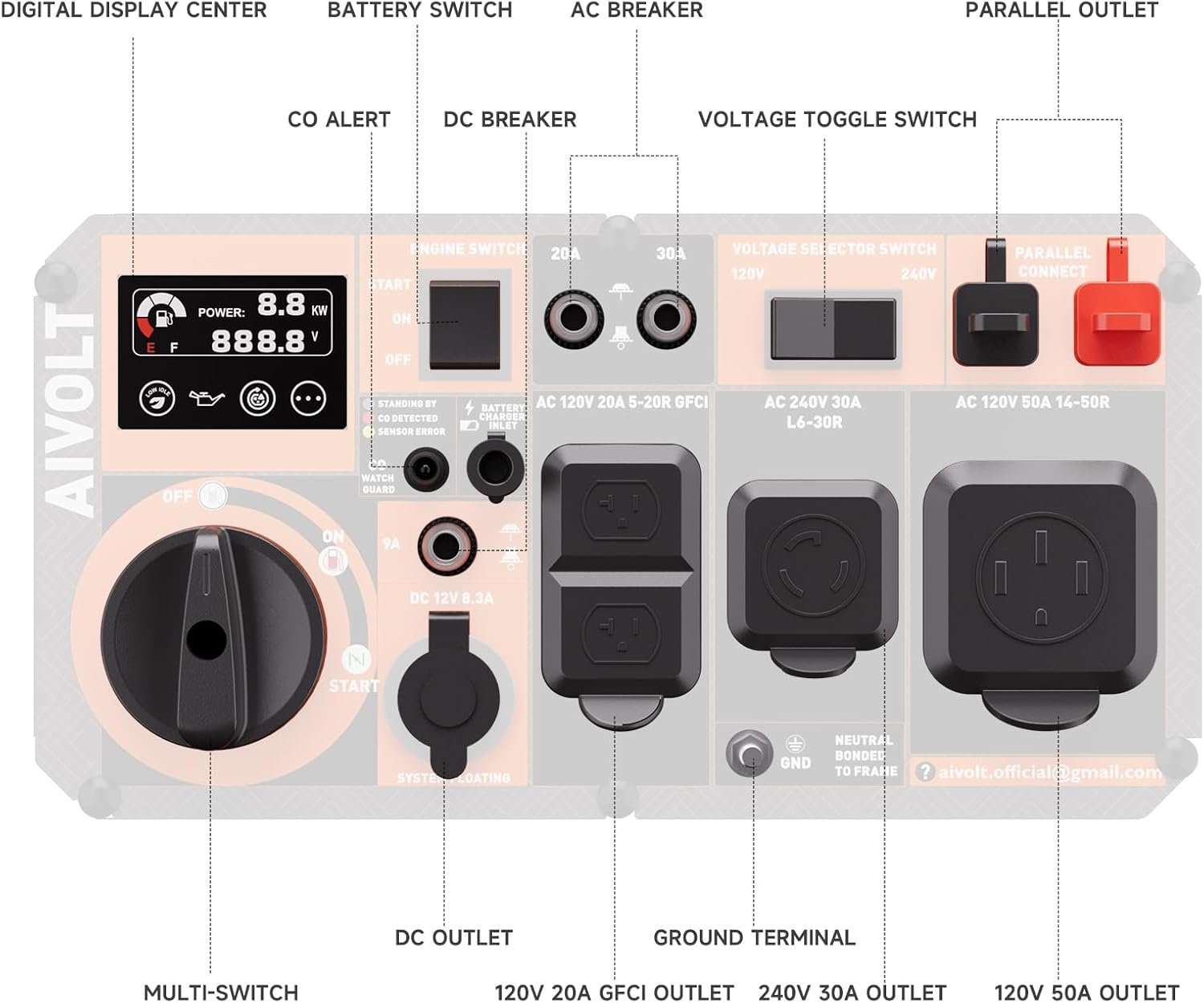 Be the first to review “AIVOLT 8000W Dual Fuel Super Quiet Inverter Generator with Electric Start – Gas Propane Powered Portable Generator Upgraded Version for Home Backup, RV, Camping & Travel – 50 State Approved” Cancel reply