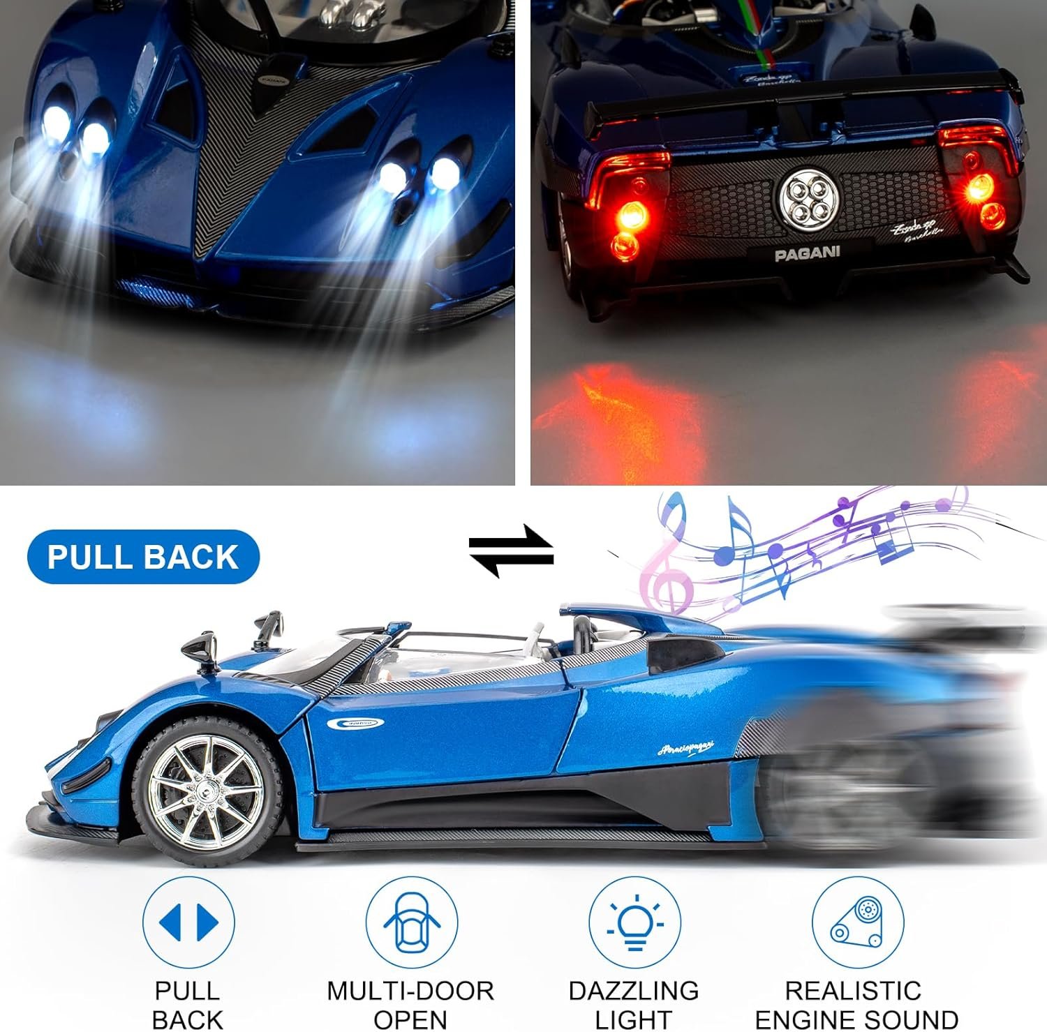 7 reviews for BDTCTK 1/24 Comapatible for Pagani Zonda HP Barchetta Model Cars Toy, Zinc Alloy Diecast Pull Back Toy Cars with Sounds and Lights Vehicles for Kids Boy Girl Gift (Blue)