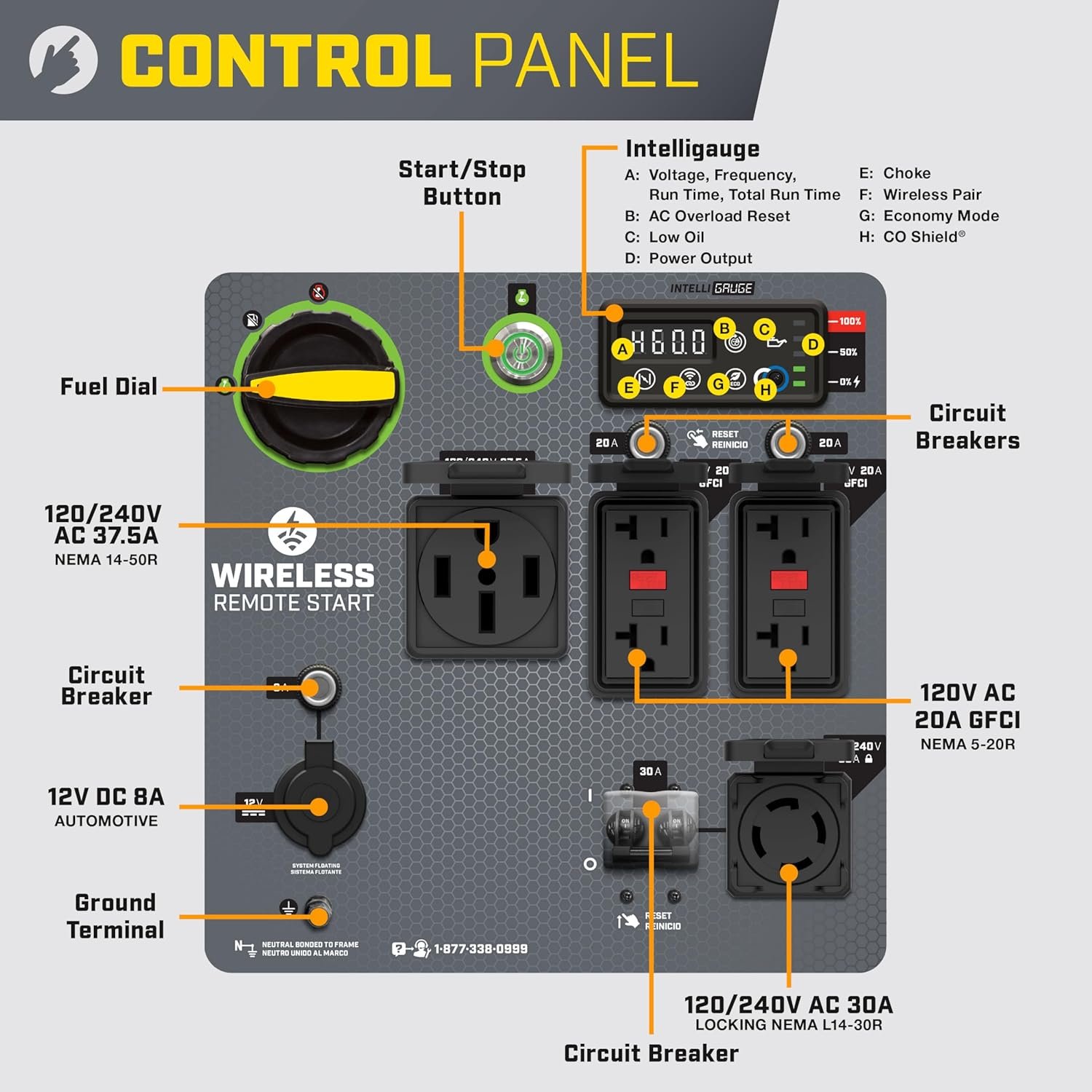 11,000-Watt Wireless Remote Start Home Backup Portable Inverter Generator with Quiet Technology and CO Shield |