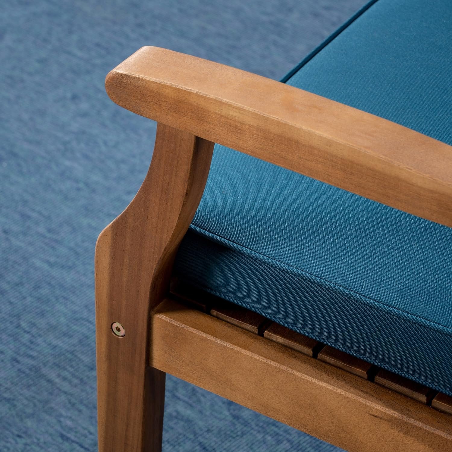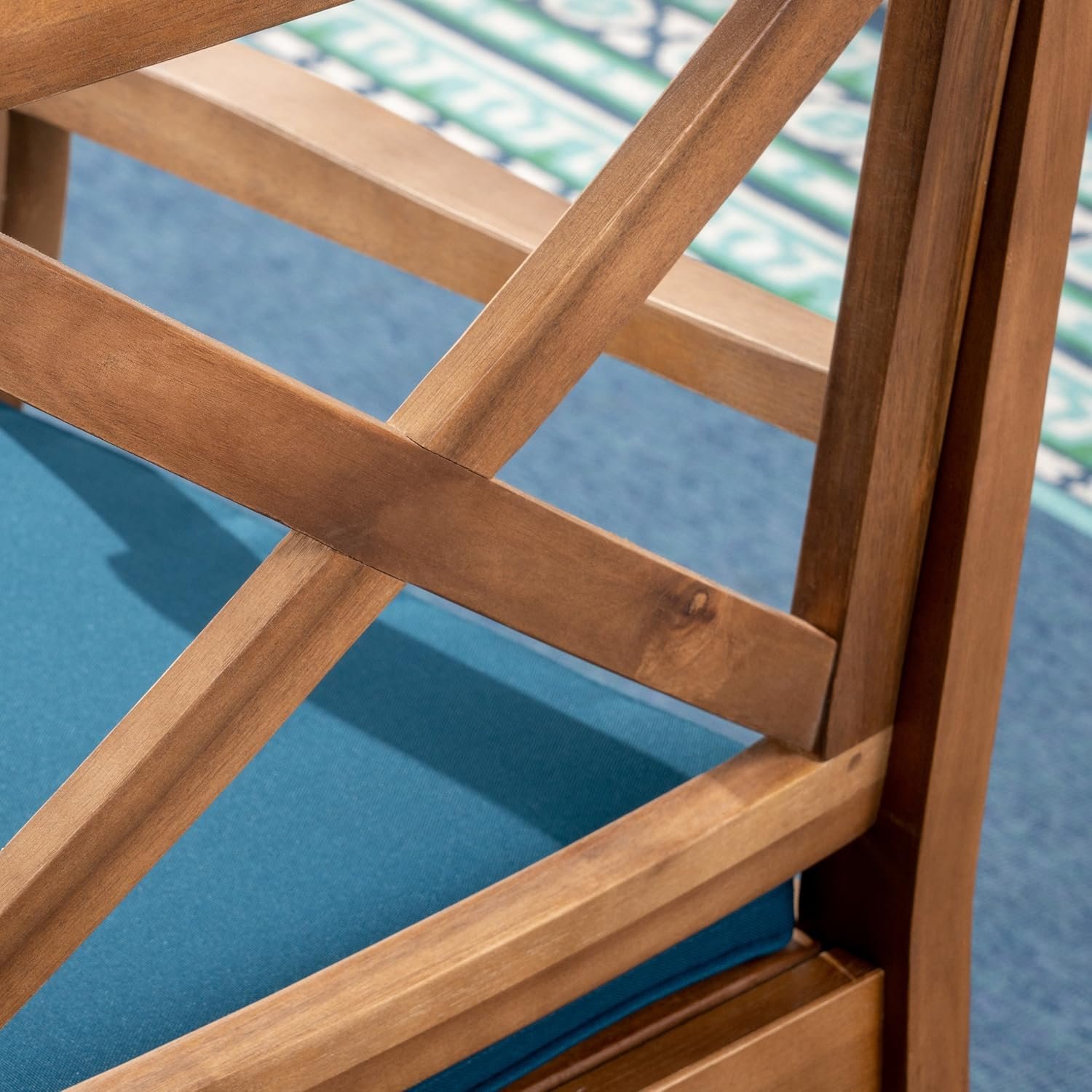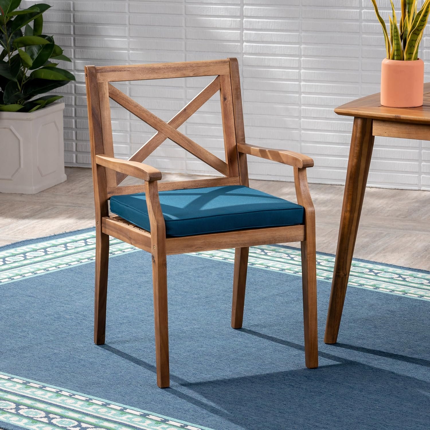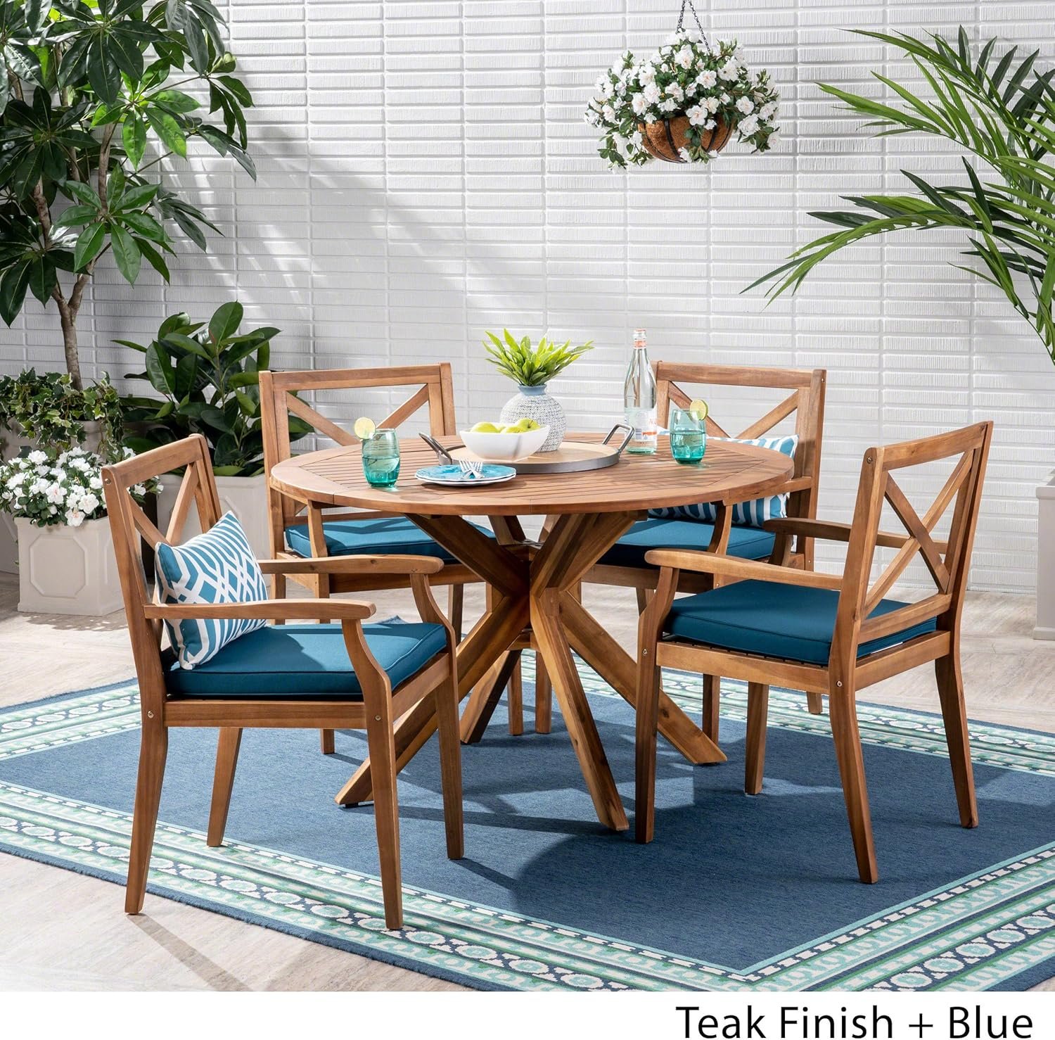 1 review for Christopher Knight Home Jordan Outdoor 5 Piece Acacia Wood Dining Set, Teak Finish/Blue