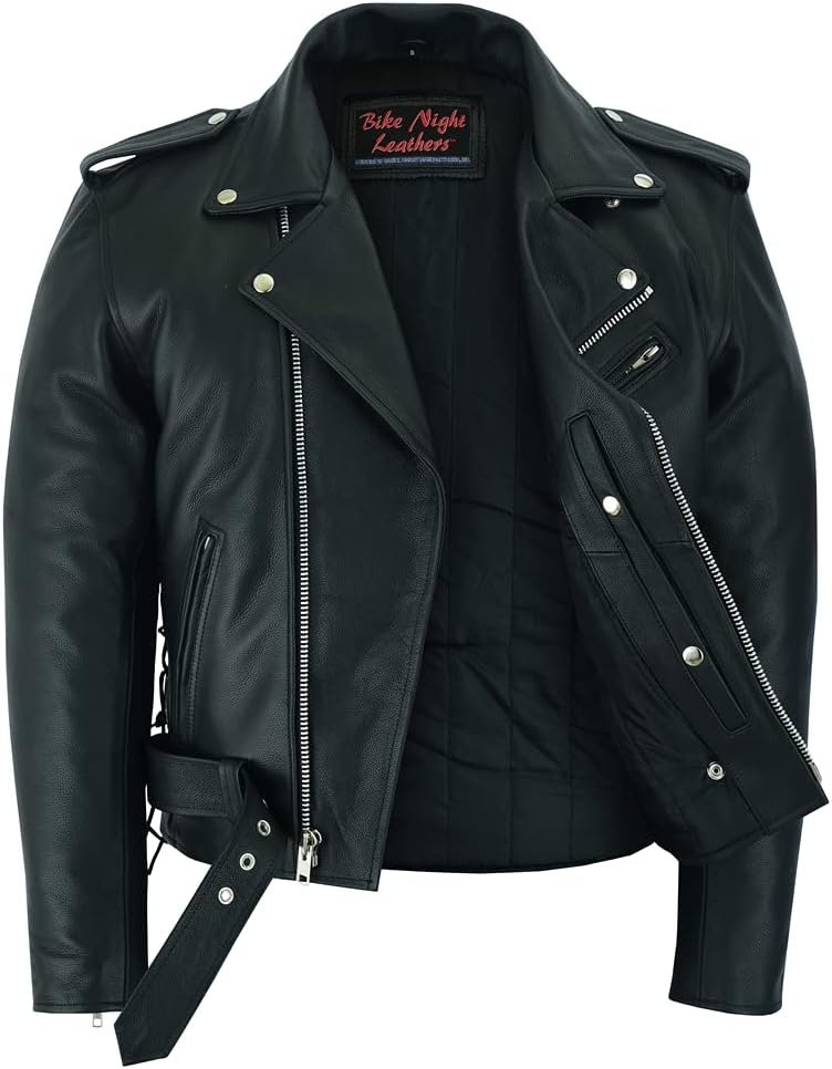 Very stylish rocker/greaser leather jacket. It’s warm, thick enough and looks great on me. I’ve worn it a day and have already received compliments on it. One thing I love about this jacket is the quality of the details and the attention to detail–the snaps are high quality, as are the zippers. The pockets are many and deep so they hold a lot of stuff, and they are also comfortable to put your hands in.As far as fit goes it does good. I’m 5-9 and 305 lbs and the 6XL is slightly big on me but that’s okay because I like the bigger fit of a jacket–not too tight please. I look and feel great.I would buy this jacket again. The company was easy to deal with and they communicated with me in a super friendly and helpful manner. You’ve won a customer for life with me!All in all im really pleased with this jacket. It fits me like a dream, is warm and looks great. The leather is high quality and smells great. It’s a substantial, high quality leather jacket.I’ve purchased a few leather jackets like this one over my lifetime and this one is by far my favorite and most well made. I’d buy this one again!