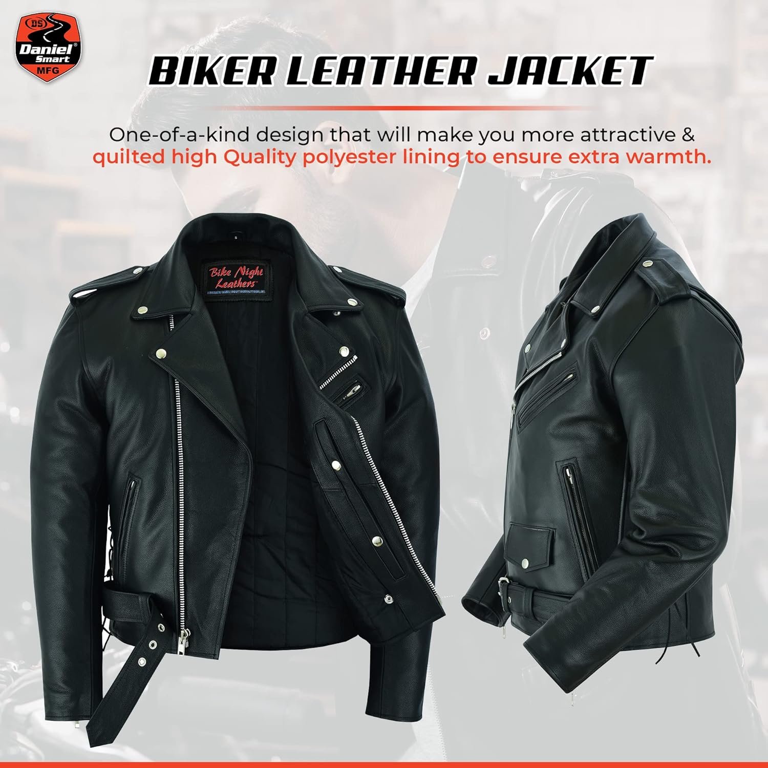 13 reviews for Daniel Smart Men Motorcycle Leather Jacket Black Economy Biker Leather Jacket with inside Pockets & Heavy Duty Zippers