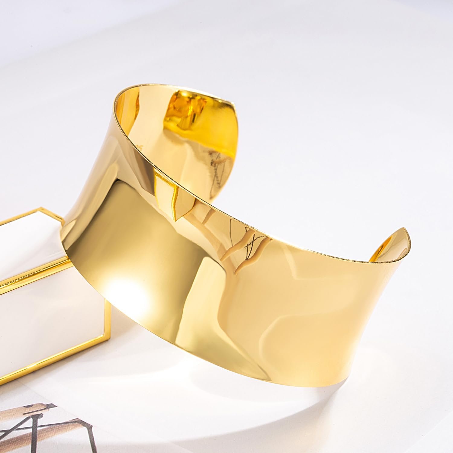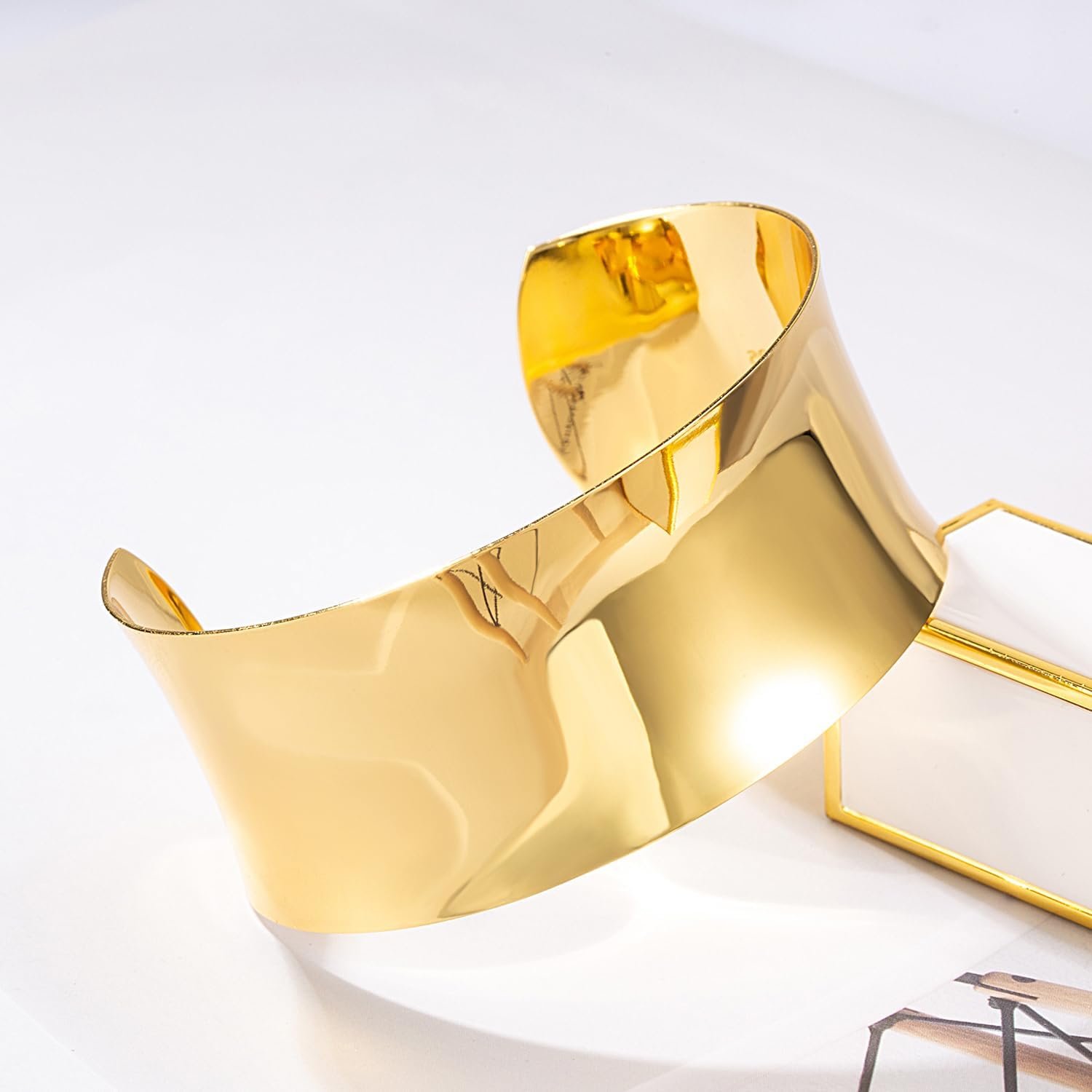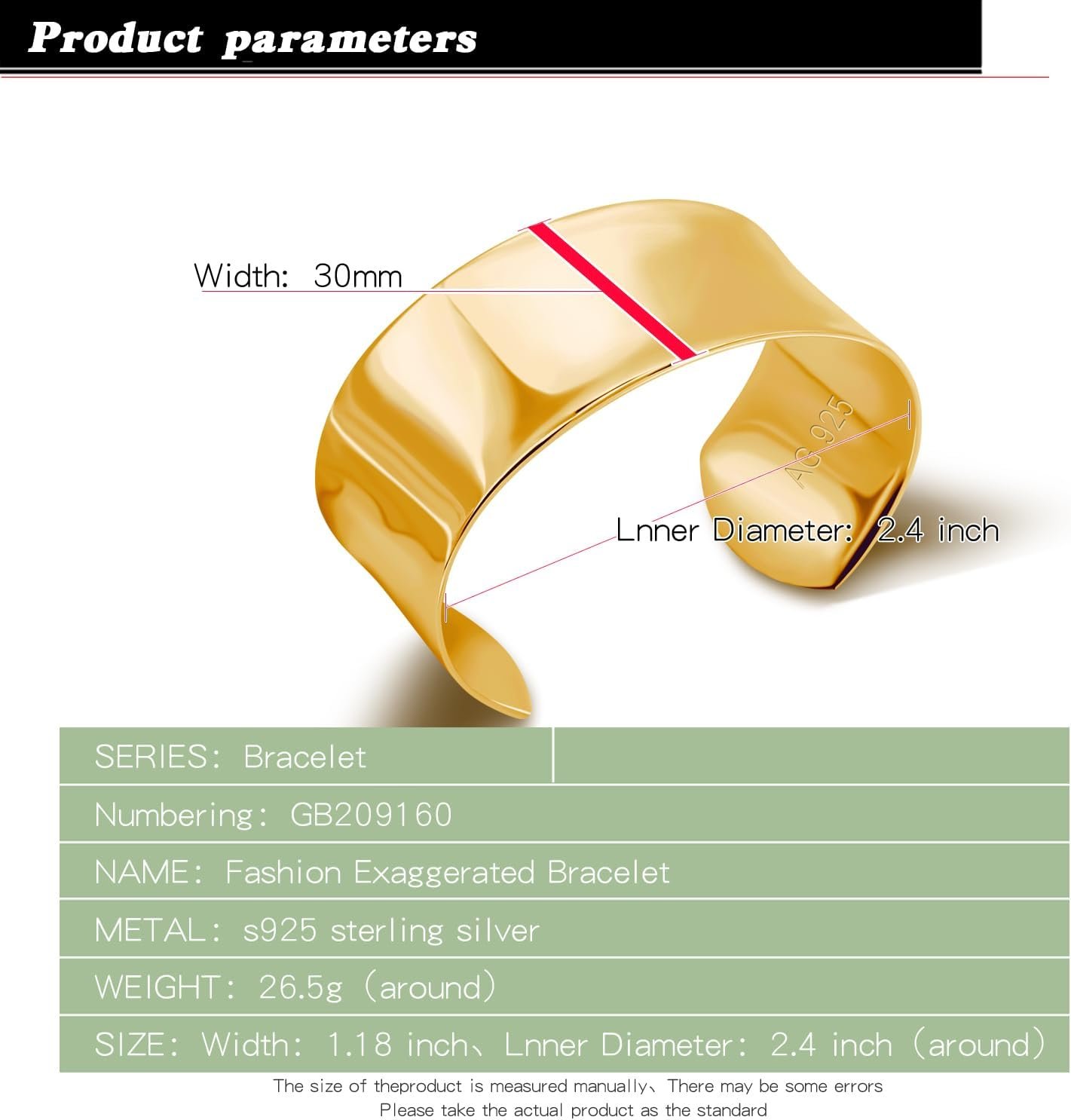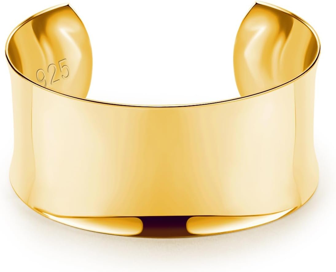 8 reviews for Dankadi Women 925 Sterling Silver Curved Bangle 30MM Wide Grooved Cuff Bangle Shiny Punk Open Bracelet Adjustable Plated 24k Gold/Rose Gold Jewelry Gift