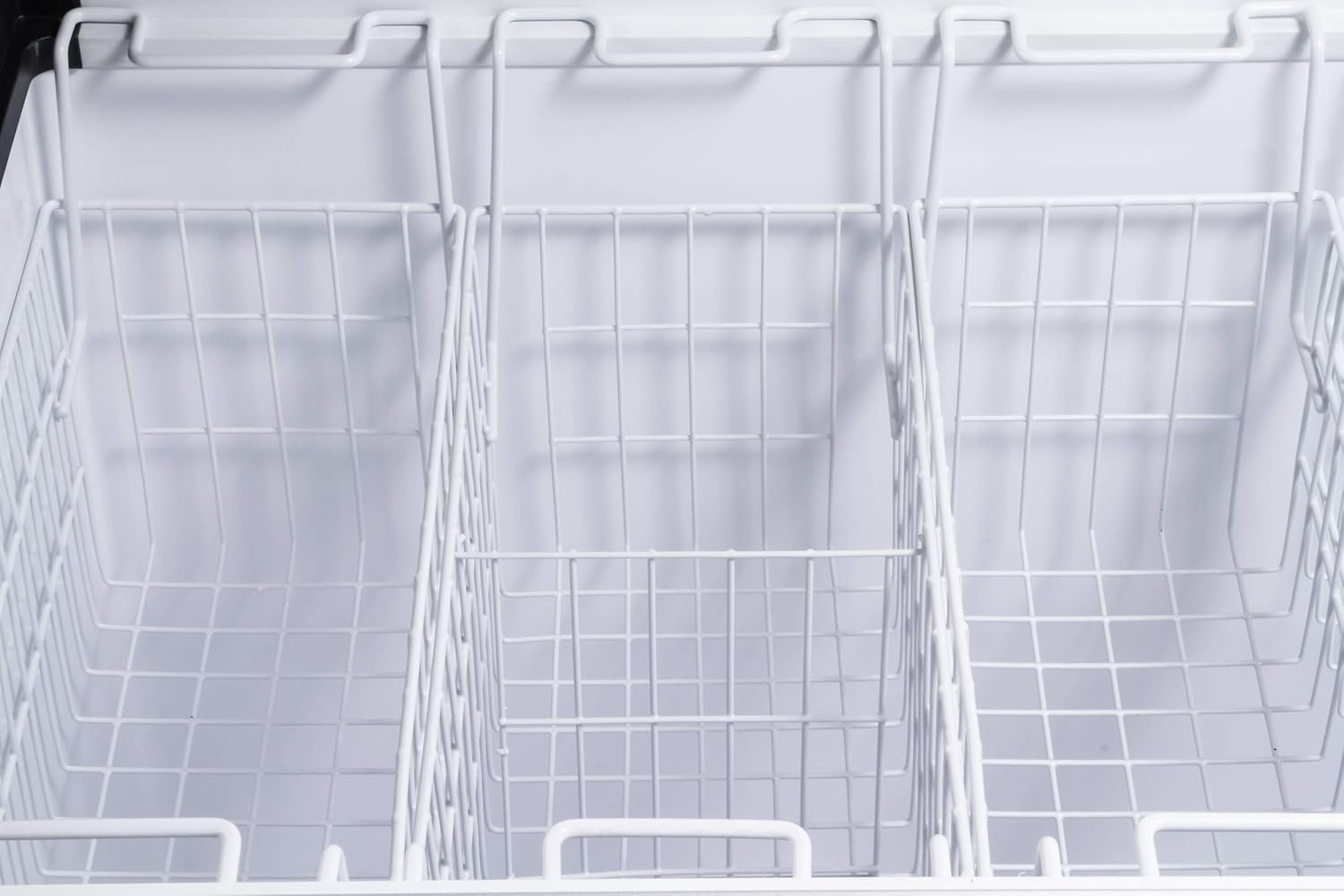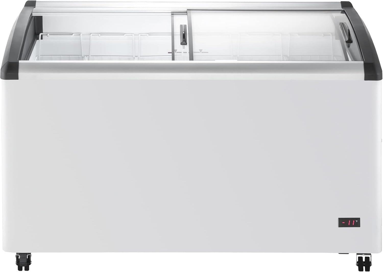 8 reviews for Duura Commercial Mobile Ice Cream Display Chest Freezer Sub Zero Temp Curved Glass Top Frost Free Lid with 6 Wire Baskets, 53.2 Inch Wide 15.2 Cubic Feet, White