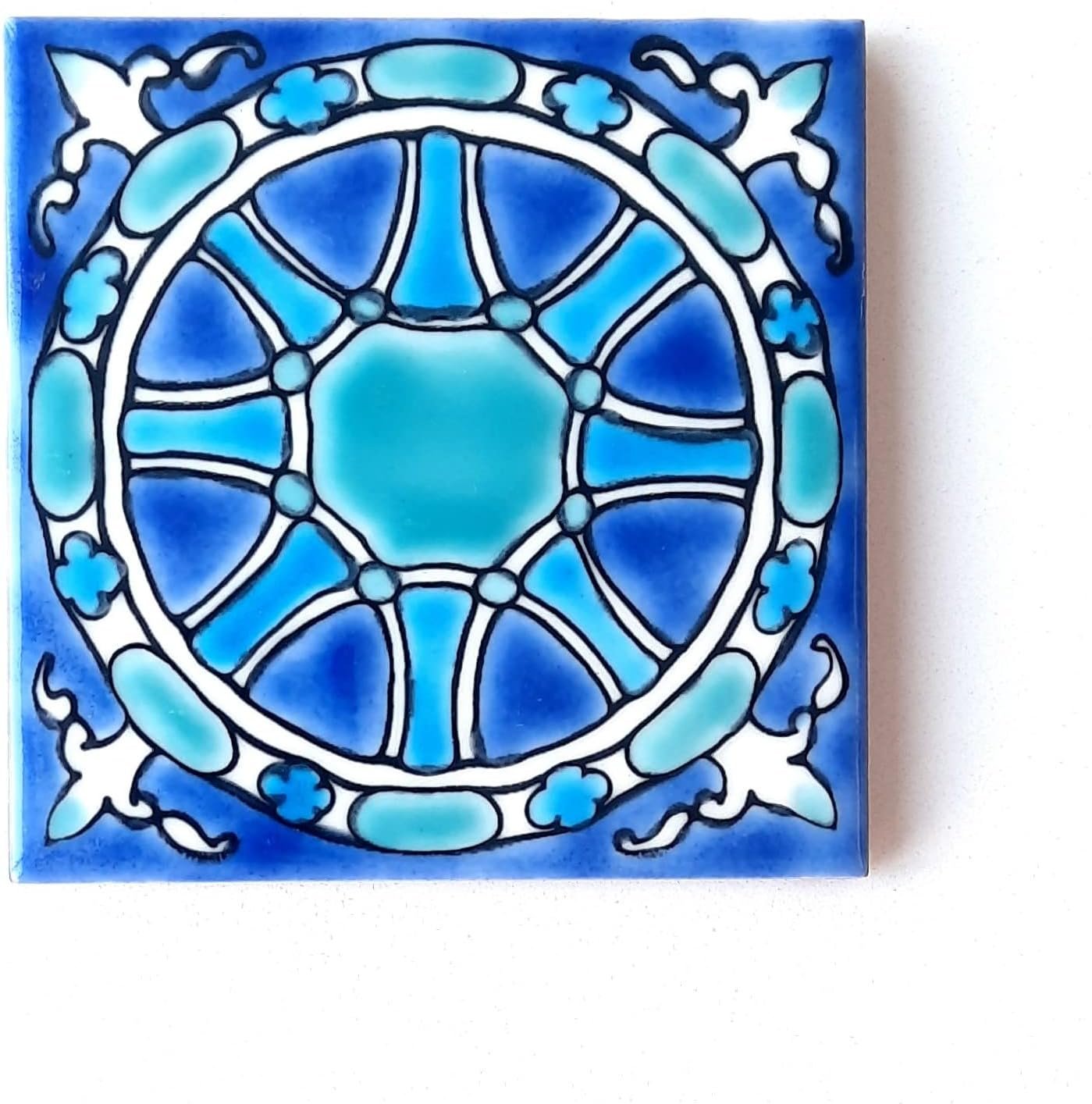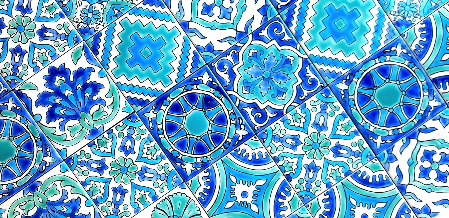 4 reviews for DŸARI Decorative Ceramic Tiles – Hand Painted Indoor & Outdoor Floor Tiles – Spanish Artisan Tile Top Kitchen – Mediterranean Decorative Tiles 4” × 4” – Durable Colorful Floor Tiles – 140 g (Eau V 3)