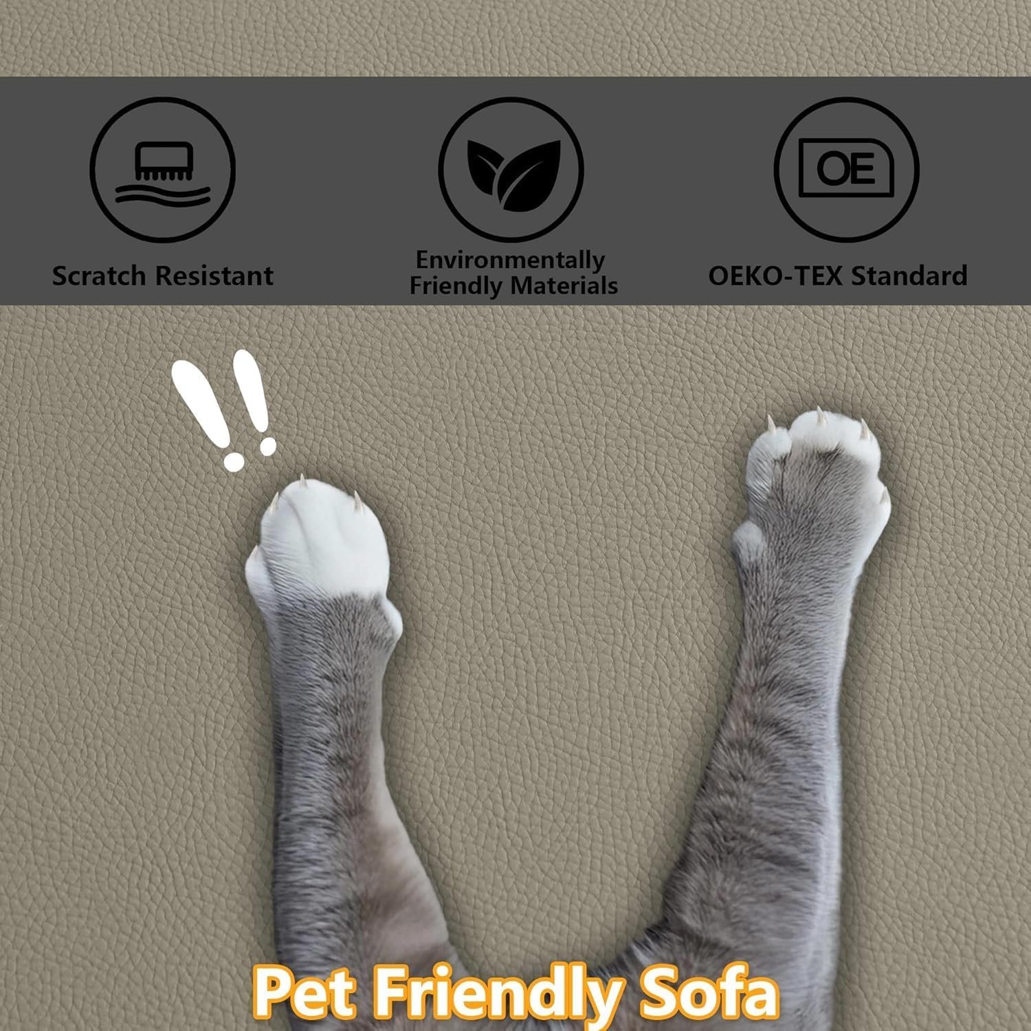Cushions filled with high-density and high-resilience sponge, more comfortable, Easier to assemble, new connection method, no gap between components, Easy to clean and waterproof, Leather material of scratch resistance, Solid wood frame, more durable |
