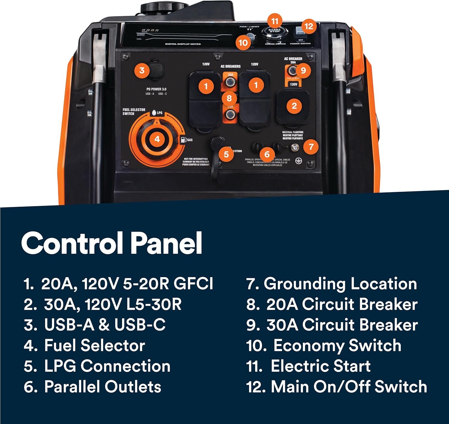 ‎CO Sensor, Dual Fuel, Electric Start, Fully Enclosed Design, USB Port