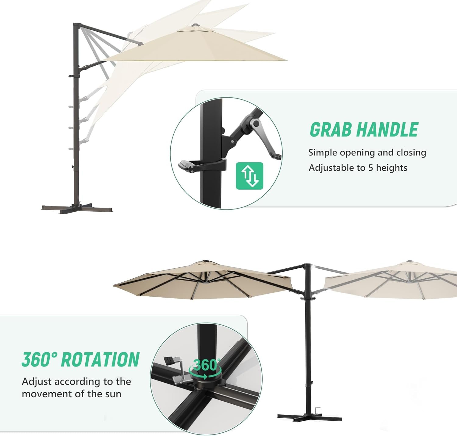 Be the first to review “Greesum 10FT Outdoor Patio Umbrella with High Pedel and 4 Gear Heights, Large Offset Market Umbrella with 360-degree Rotation, Without Base, Hanging Outdoor Shade for Garden, Lawn, Pool, Beige” Cancel reply