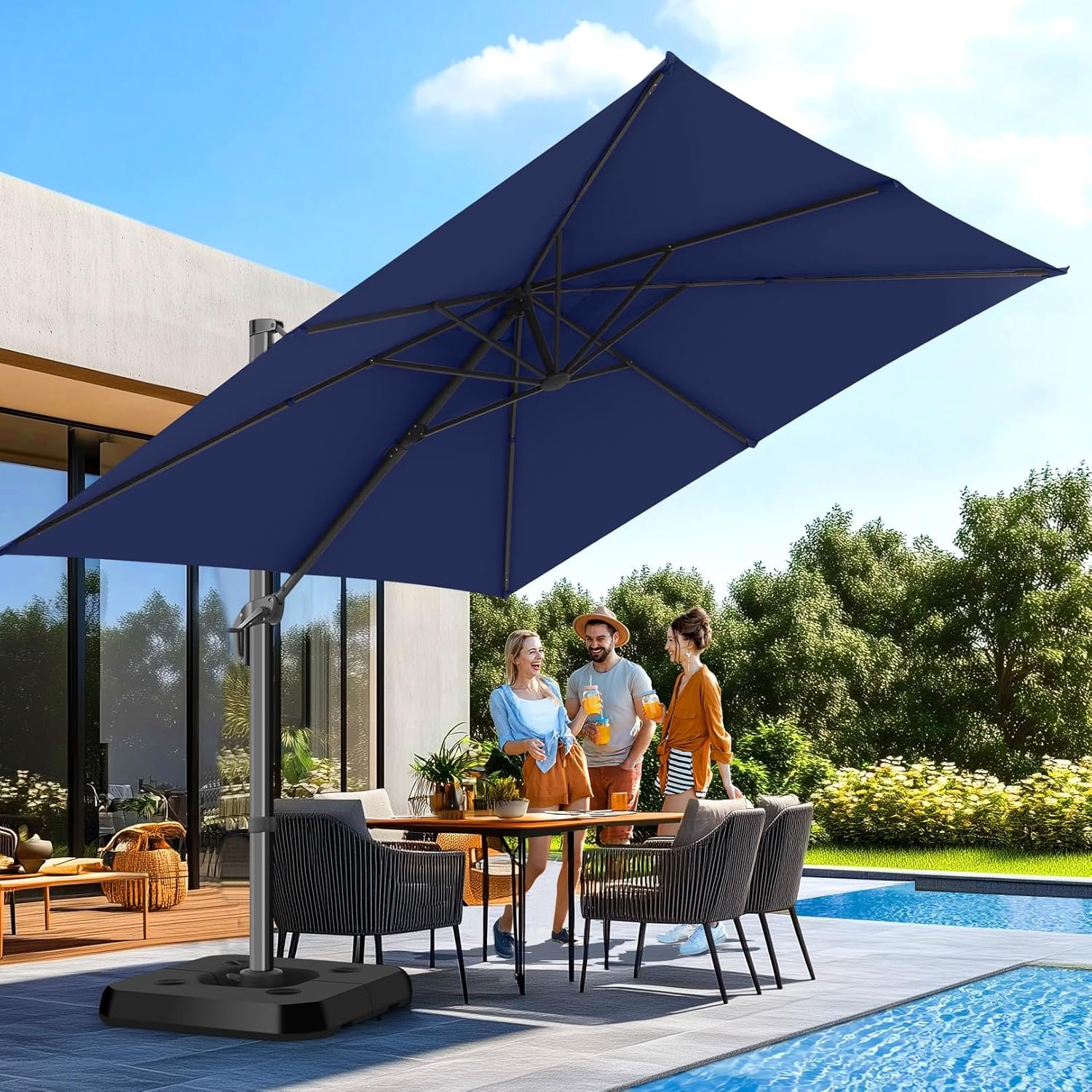 4 reviews for HOTIME10x10ft Large Cantilever Patio Umbrellas – Upgrade and Intensify – with 360 Rotation and 5 Angles Adjustment – Aluminum Offset Pool Umbrella Square Outdoor Umbrella for Patio Garden Deck Pool, Dark Blue