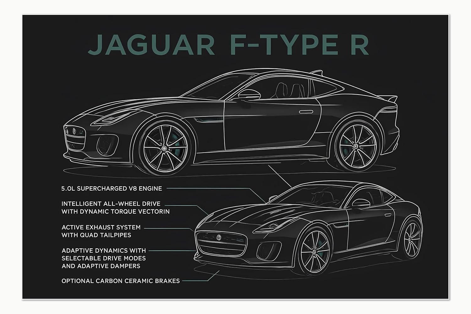 Jaguar F-Type R Blueprint Poster 18×12 Inch Car Wall Art