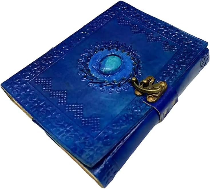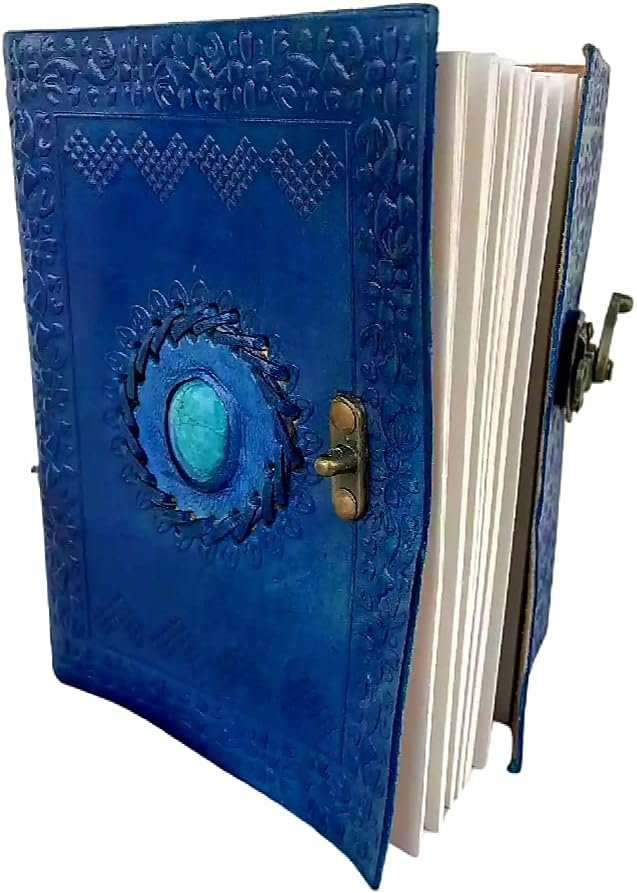 8 reviews for Leather Journal with Unlined Pages – Turquoise Blue Stone Leather Bound Writing Journal for Women & Men medieval Gemstone Studded Handmade Notebook Office Poetry Sketch Book Handcraft Paper Stone