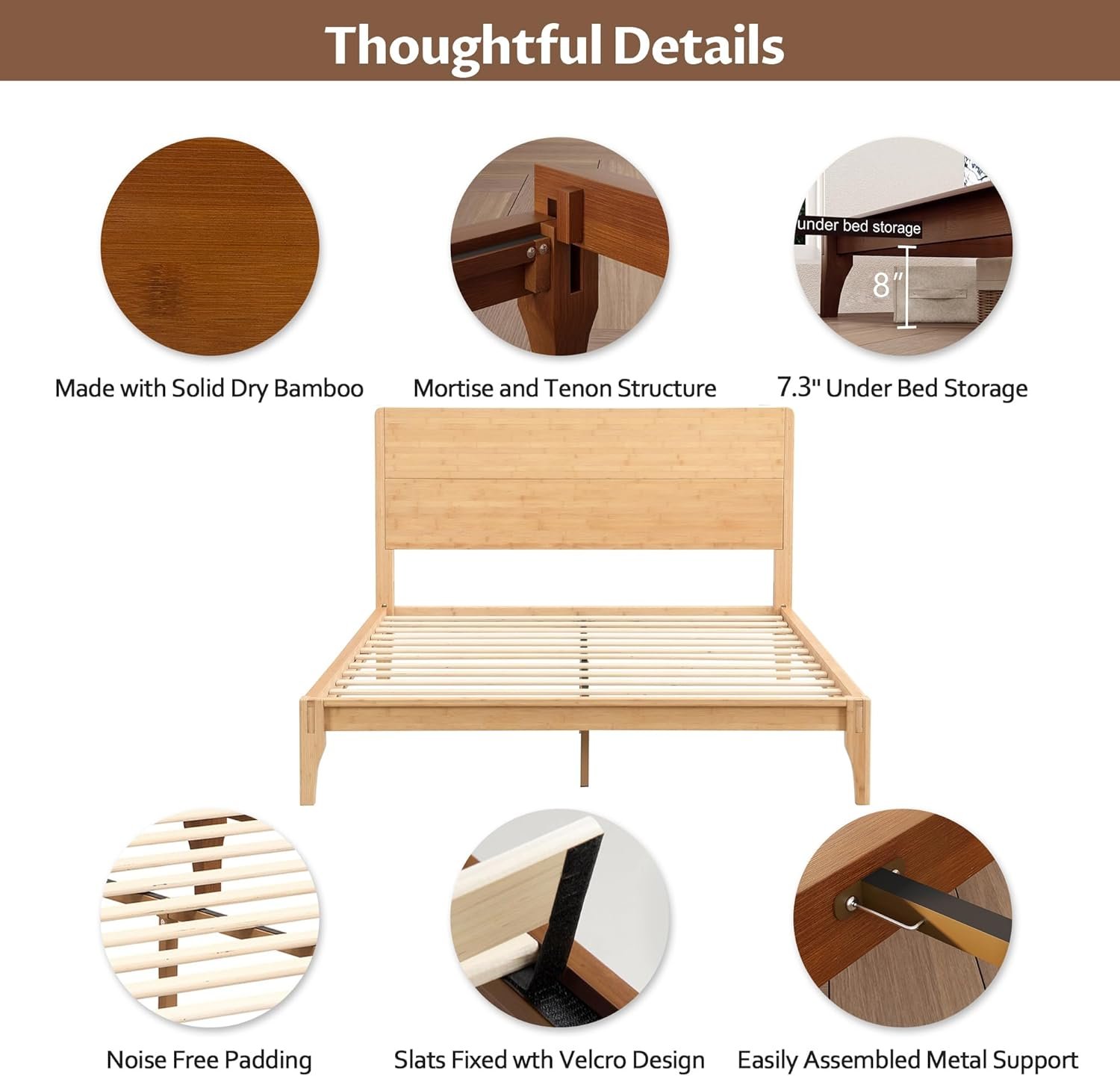 Easy Assembly, Lightweight, Natural Bamboo Texture, No Box Spring Needed, Tall Headboard |