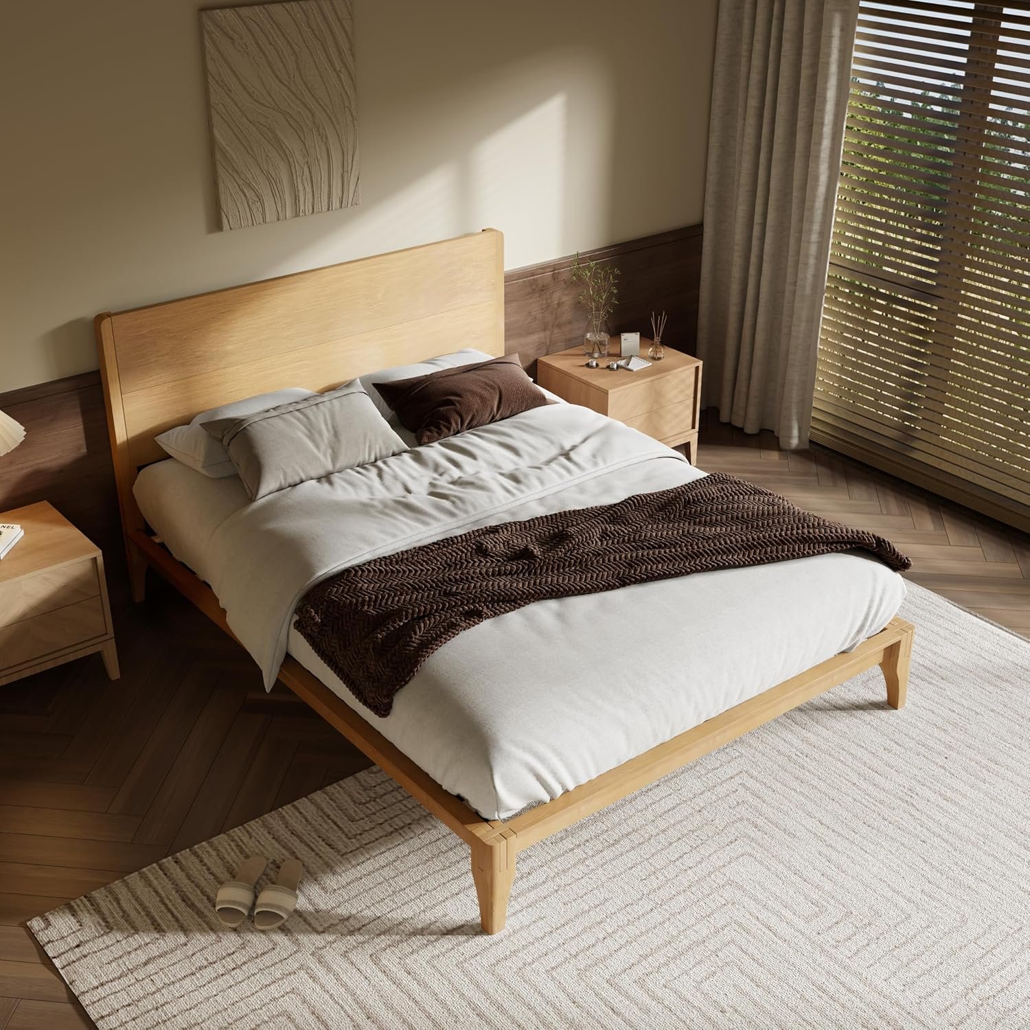 11 reviews for Merax Queen Size Bamboo Platform Bed, Mid-Century Modern Bed Frame with Tall Headboard, Solid Sustainable Bedframe Queen-Size, Wood Slat Support, No Box Spring Needed, Easy Assembly, Natural