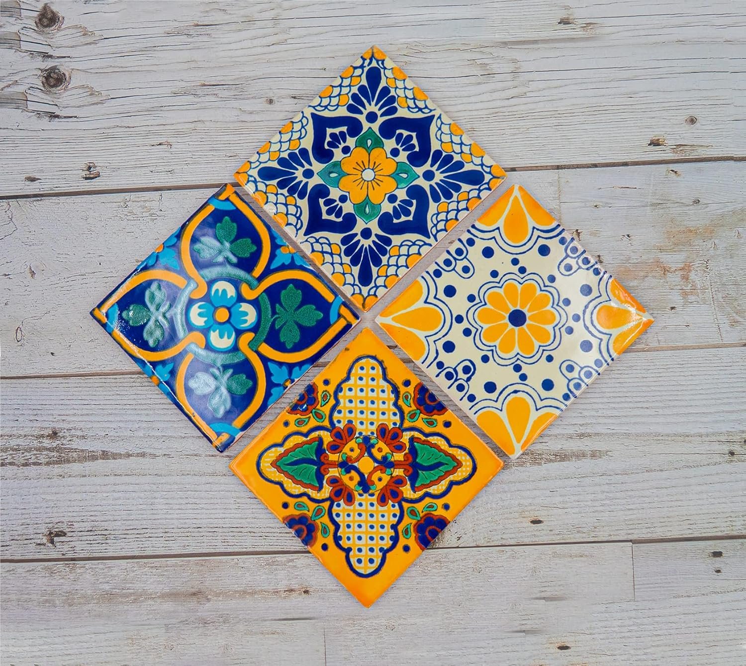 8 reviews for Mexican Talavera Tile Spanish Mediterranean Art Colorful 4″x4″ Ceramic Hand Painted Mosaic for Bathroom, Wall, Mirror, Kitchen Rustic Decor Pottery (20, Multi1)