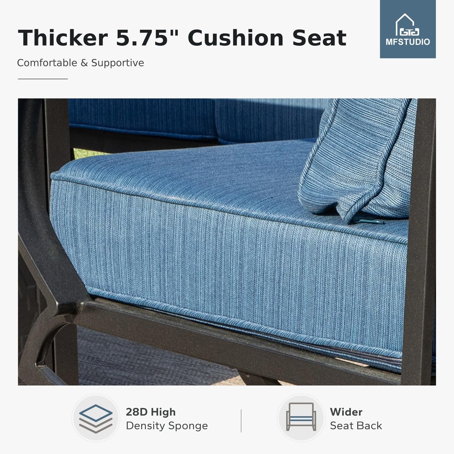 I’m so happy with this MFSTUDIO patio conversation set! The steel frame feels solid and well-made, giving the chairs great stability, and the design looks clean and modern in my outdoor space. The 5.8” beige cushions are wonderfully thick and surprisingly comfortable — perfect for relaxing on the patio or enjoying a morning coffee in the backyard. The color also blends beautifully with any decor. Assembly was straightforward, and the quality is absolutely worth the price. Highly recommend these chairs if you want durable, comfortable, and elegant outdoor seating!
