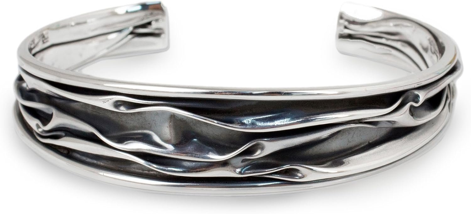 8 reviews for NOVICA No Stone .925 Sterling Silver Cuff Bracelet ‘Narrow River’