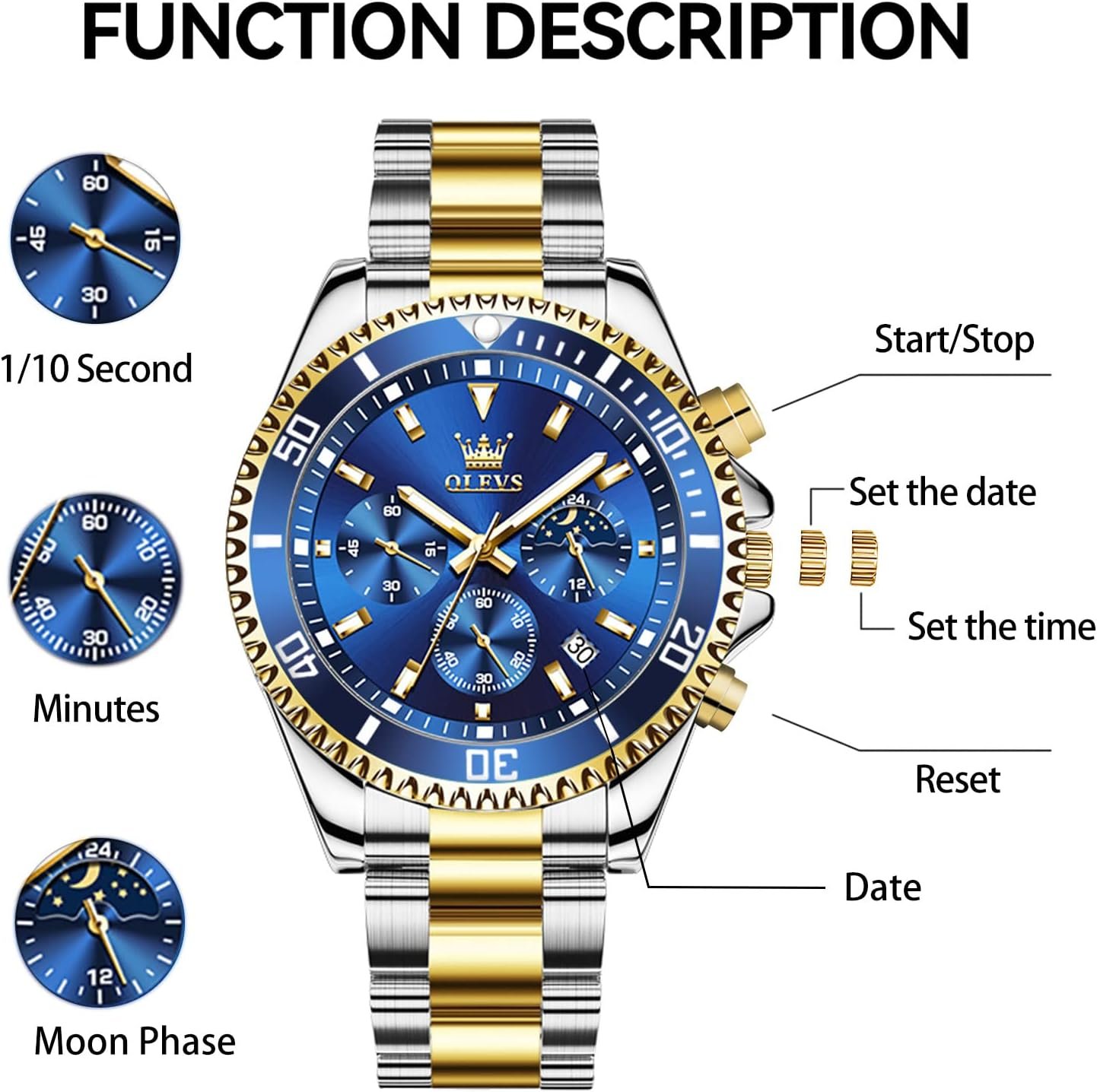 13 reviews for OLEVS Men’s Stainless Steel Watch Fashion Luxury Big Face Analog Quartz Waterproof Date Business Chronograph Watches for Men
