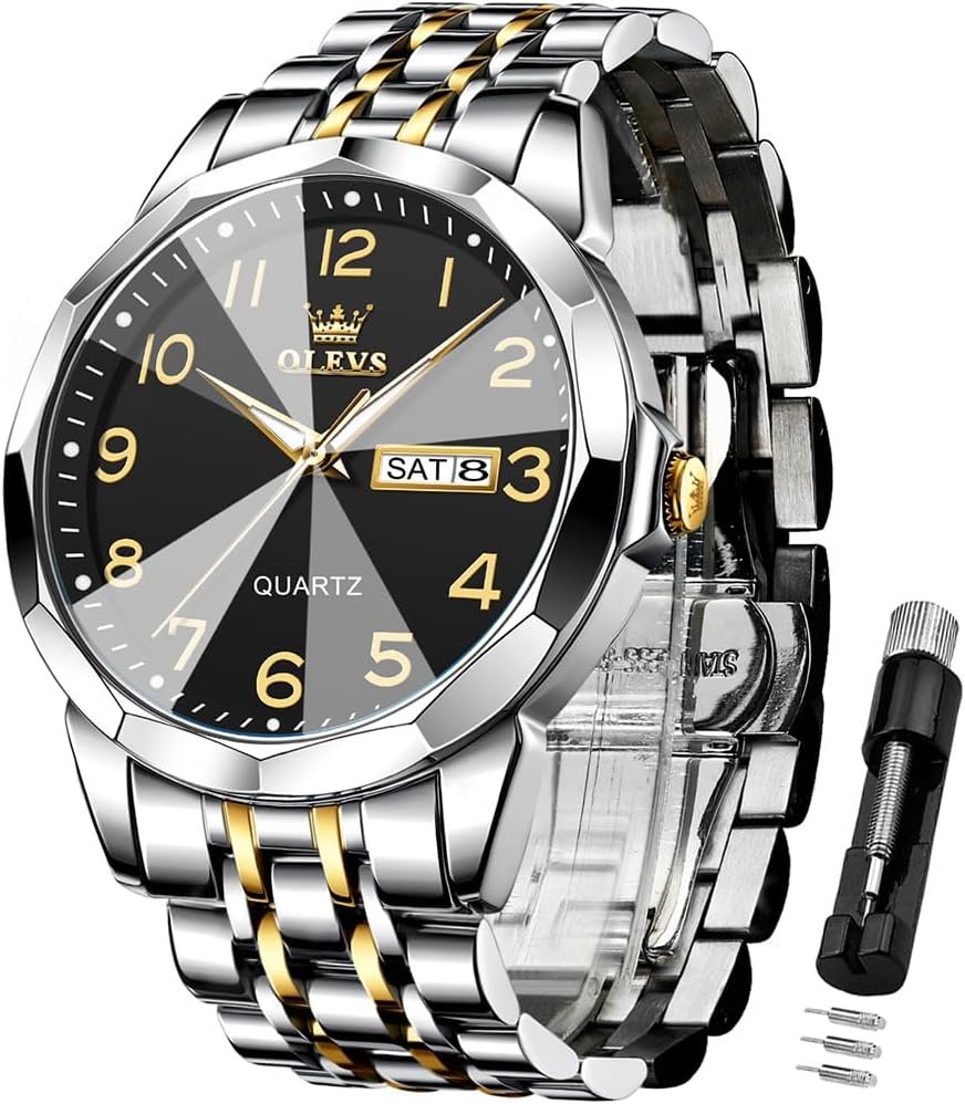 OLEVS Watch for Men Simple Business Dress Analog Stainless Steel Waterproof Luminous Date Easy Read Men Wrsit Watch