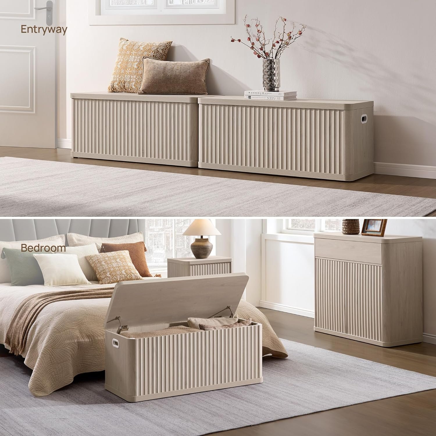 4 reviews for SICOTAS Storage Bench 40.2″ Wide Shoe Bench with Lift Top Large Wooden Storage Chest Trunk Modern Blanket Chest with 2 Safety Hinges & Seating for Bedroom Entryway Living Room Hallway