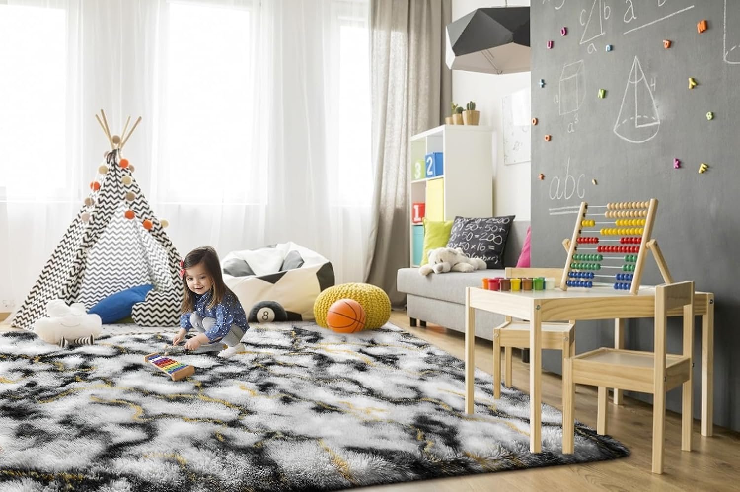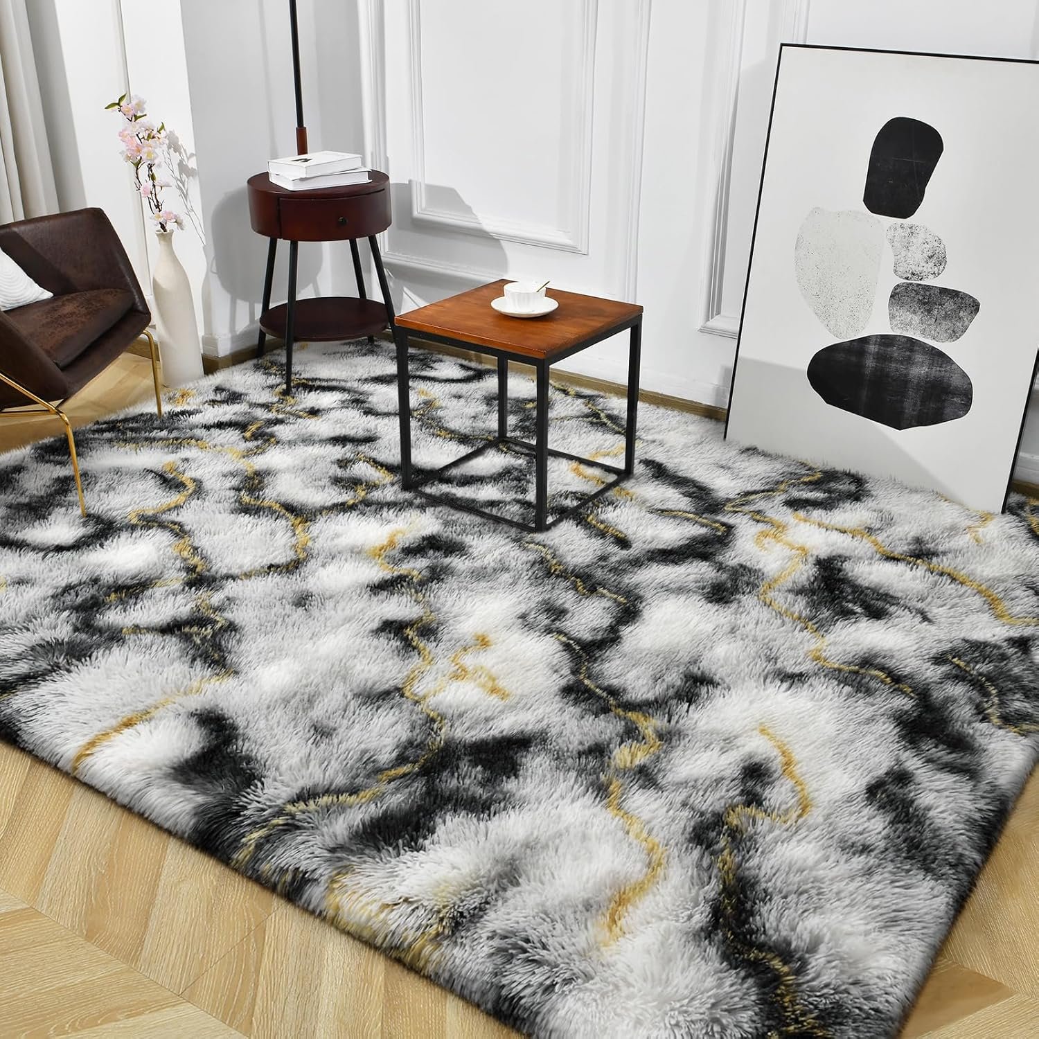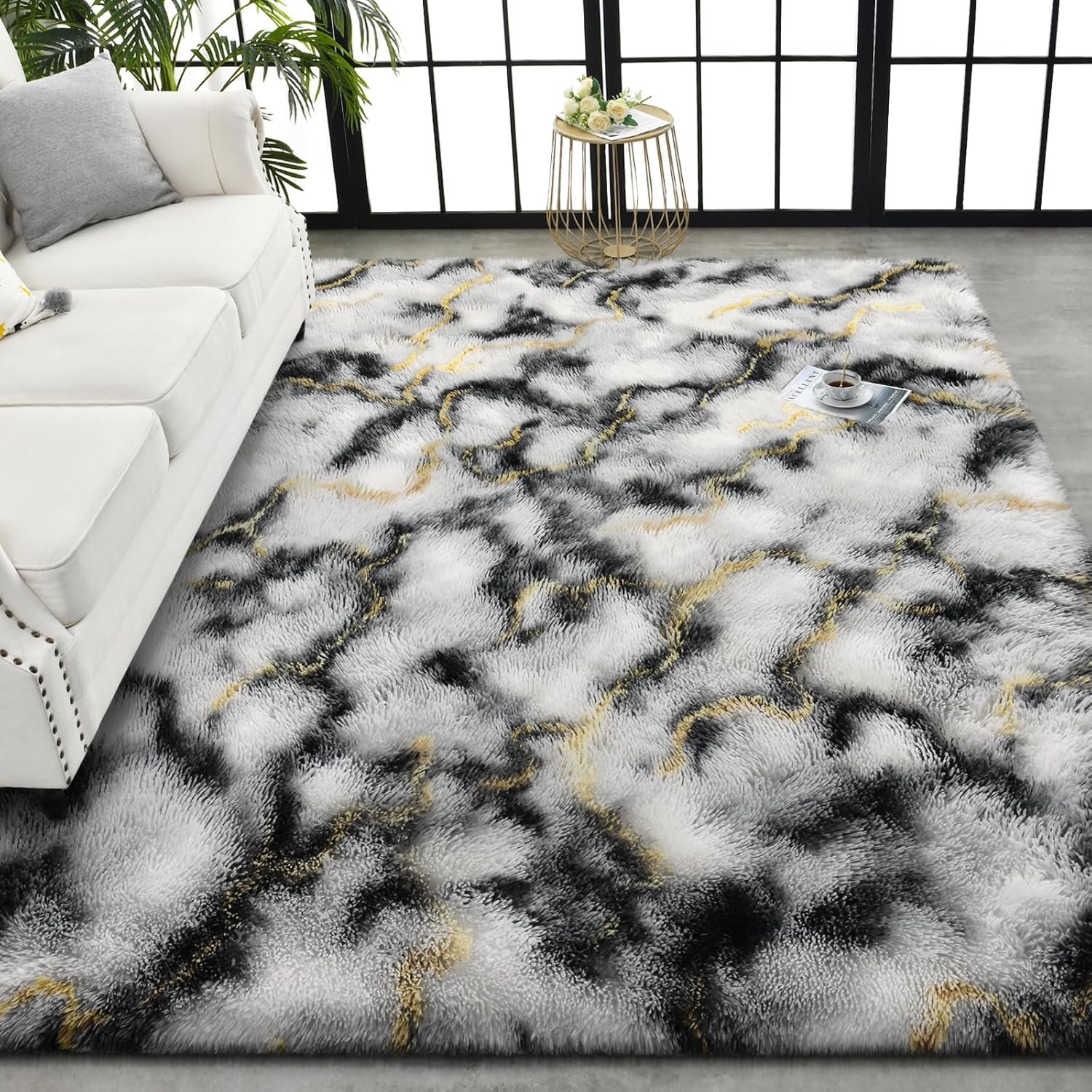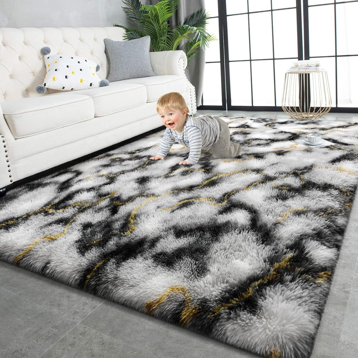 13 reviews for TWINNIS Super Soft Shaggy Rugs Fluffy Carpets, 5×8 Feet, Indoor Modern Plush Area Rugs for Living Room Bedroom Kids Room Nursery Home Decor, Upgrade Anti-Skid Rectangular Fuzzy Rug, Grey Gold
