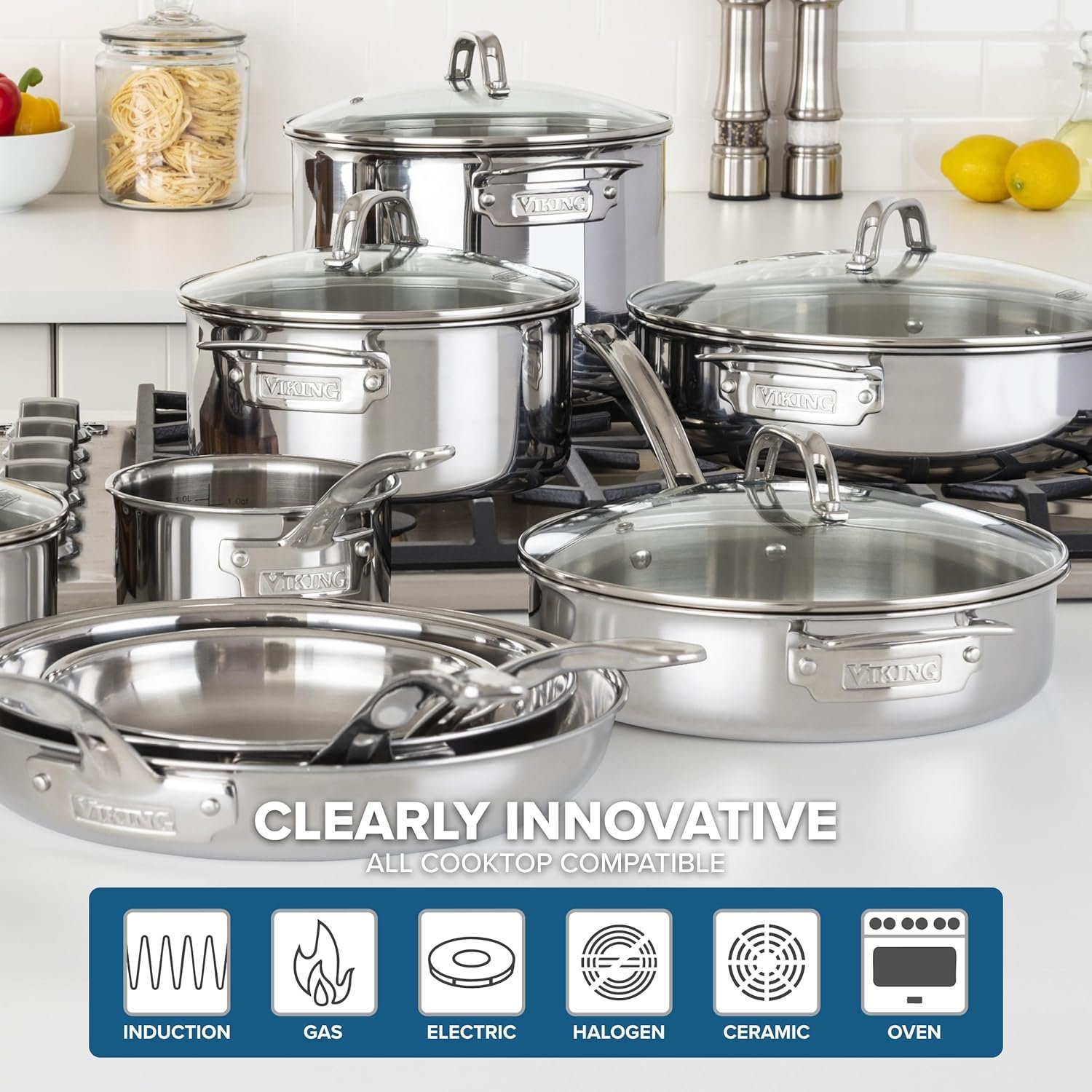 11 reviews for Viking 3-Ply Pots and Pans Set, 17 Piece Stainless Steel Cookware Glass Lids, Steamer Insert, Silver