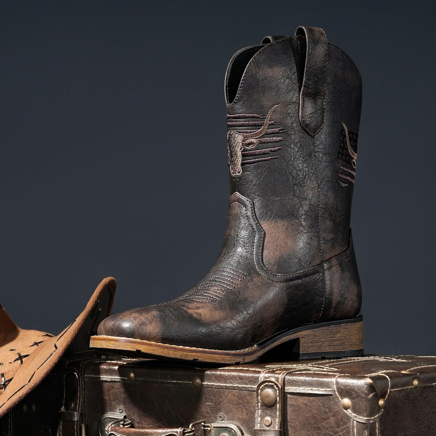 I honestly really like these cowboy boots. The fit was spot on for me — comfortable right out of the box with plenty of room thanks to the square toe design. They don’t feel tight or stiff like some boots do when you first put them on, and I was able to wear them all day without my feet getting tired.The vegan leather actually looks great and gives off that classic western style without feeling cheap. I’ve worn them with jeans for casual outings and they look just as good at a backyard BBQ or just running errands around town. The pull-on design makes them easy to throw on and go, which I appreciate.Another thing I noticed is the traction — the slip-resistant sole feels solid and stable whether I’m walking outside or on smoother surfaces. Overall, these boots are comfortable, stylish, and practical for everyday wear.Definitely a great pair of cowboy boots if you want something that fits well and looks good without breaking the bank.