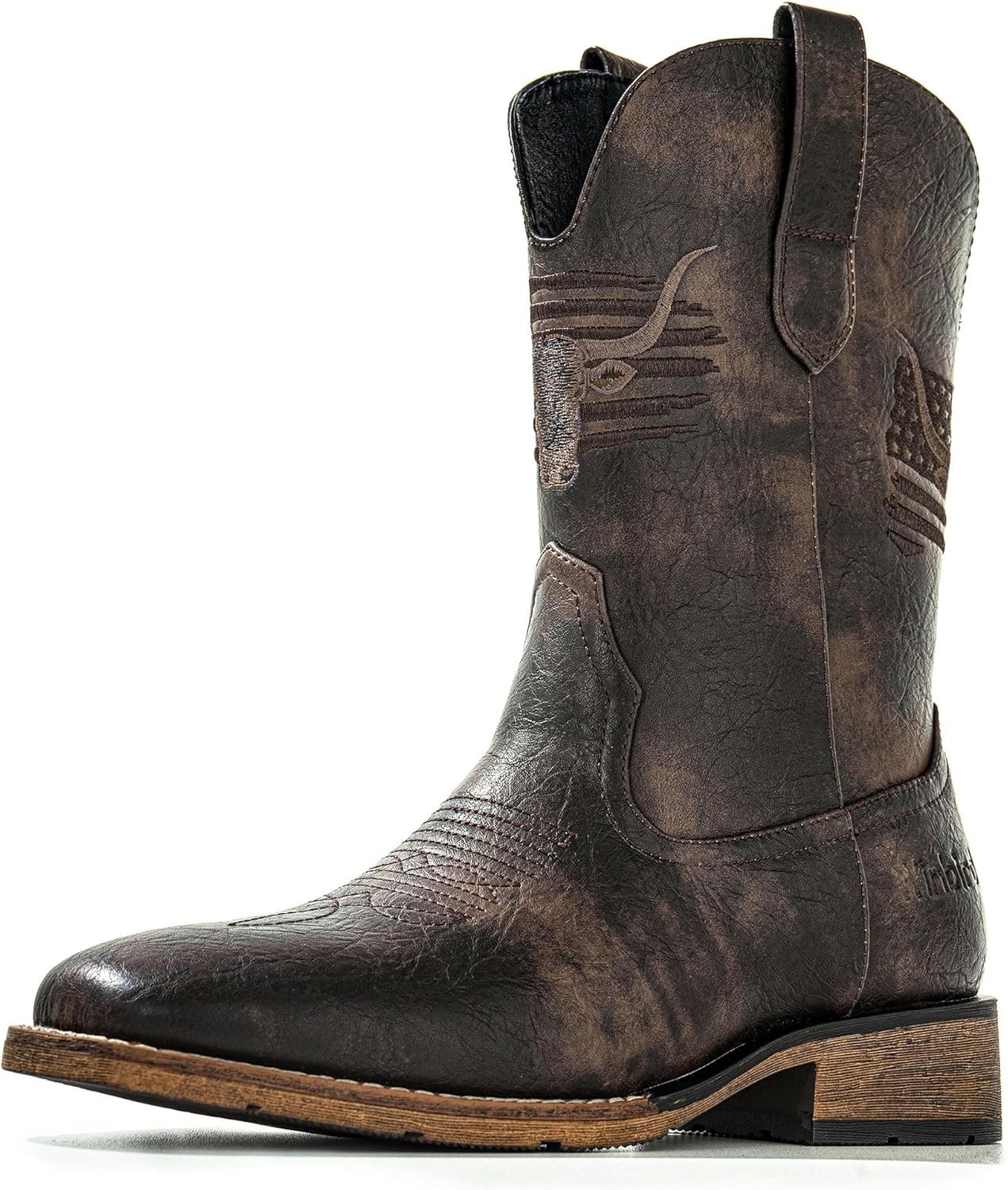 Comfortable Pull-On Boots With Classic Western Character — These square-toe western boots fit true to size right out of the box and strike a confident balance between comfort, style, and everyday wearability.I wear a size 11, and the size 11 in these boots fit exactly as expected—secure without feeling tight, and comfortable from the first wear. The square-toe design provides extra room for natural foot movement, which makes a noticeable difference when walking or standing for longer periods.The vegan leather has a convincing grain texture and clean stitching that gives the boots a rugged, western look without appearing artificial. The patriotic embroidery adds a bold Americana detail, but it’s tasteful rather than loud. The 1.5-inch heel provides a subtle lift while remaining stable and easy to walk in.These pair well with jeans and simple outfits, making them versatile enough for everyday wear, casual outings, barbecues, or country-style events. The pull-on design makes them easy to get on and off, and the slip-resistant outsole offers reliable traction on pavement and outdoor surfaces.Inside, the multi-layer rebound insole and breathable mesh lining provide good support and comfort for extended wear. While they were comfortable immediately, the materials do firm up slightly during the first few days, which is normal for this style of boot. After a short break-in period, they settle in nicely.Overall, these boots deliver the western look I wanted with comfort that holds up throughout the day.✔️ Pros: • True-to-size fit with immediate comfort • Square-toe design allows natural foot movement • Convincing vegan leather with clean stitching • Patriotic embroidery adds character without overpowering • Cushioned insole with breathable lining • Stable heel and slip-resistant outsole • Easy pull-on design • Versatile styling for casual wear❌ Cons: • Vegan leather will not patina like real leather (may matter to traditional leather purists) • Slight stiffness during the first few days of wear⁉️ Why 5 Stars? Because these boots fit as expected, look sharp, and remain comfortable for everyday use. They deliver solid value and reliable wear without surprises.⭐️ Final Verdict: If you’re looking for comfortable, easy-wearing square-toe western boots with classic styling and modern comfort, these are a strong choice. They work well for daily wear and casual events, and they look even better once broken in. Paws-Up Approved. Five Stars! ⭐️⭐️⭐️⭐️⭐️ 🐾