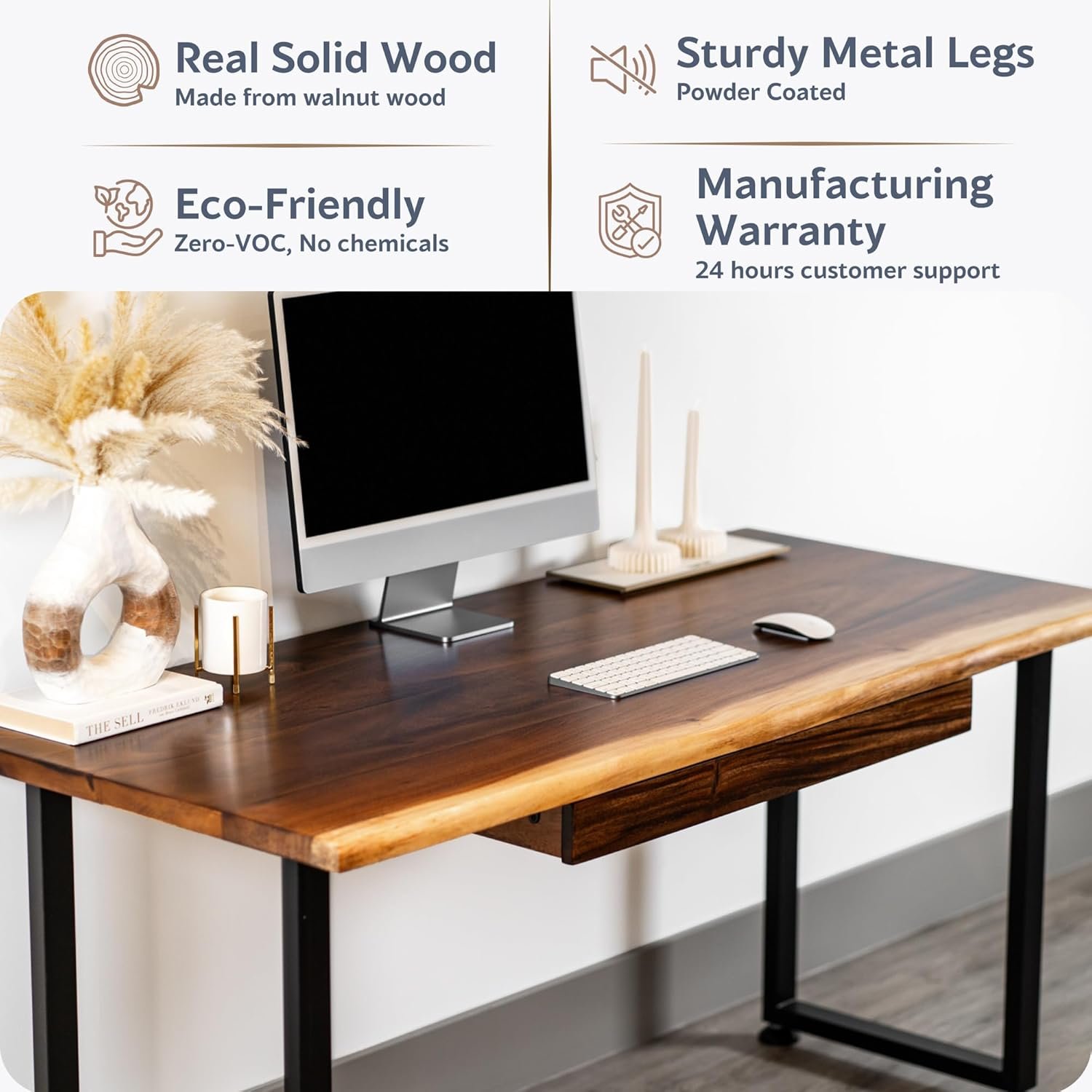 5 reviews for Wood Computer Desk with Drawer – 48×27 Solid Wood Desk, Live Edge Walnut Desk, Sturdy Metal Legs – Scratch and Stain Resistant Finish – Premium Quality