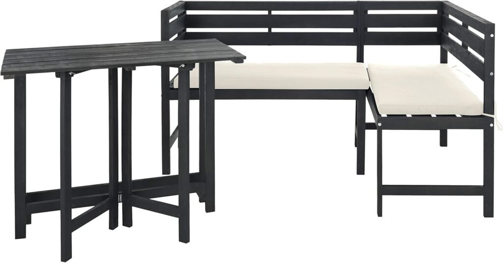 Safavieh PAT6754A Collection Wilton Teak and Navy Balcony Corner Lounge Outdoor Set