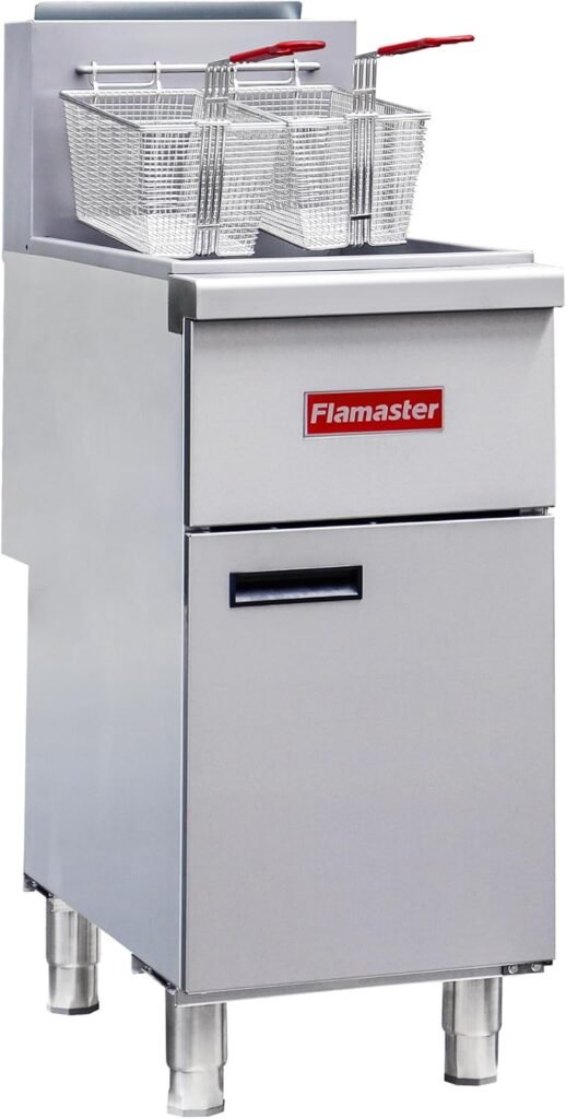 Commercial Gas Floor Fryer with 2 Baskets, 120000 BTU Natural Gas Fryer-Only Commercial Use, 4 Heating Tubes, 55 lb Oil Capacity Deep Fryer for Restaurants, Fast Food, Food Trucks