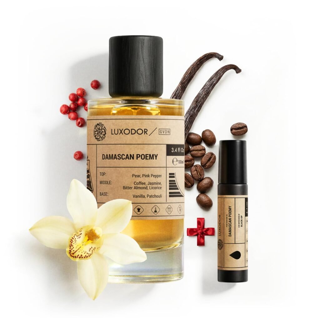 Inspired by Y S.L’s B.lack O.pium 3.4 fl. oz (100ml) Damascus Poemy with Pheromone Roll-On Oil 10 ml | Women’s Dupes Fragrances | Long Lasting Perfume Vanilla for Women | Womens Perfume
