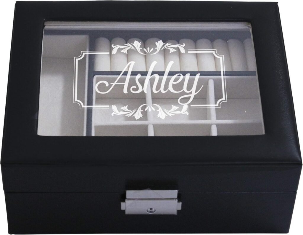 My Personal Memories Custom Personalized Jewelry Box, Tray & Organizer with Glass Top – Customized and Engraved Accessories Gift for Mom, Wife, Her (Medium 7.5″ X 6″, Midnight Black)