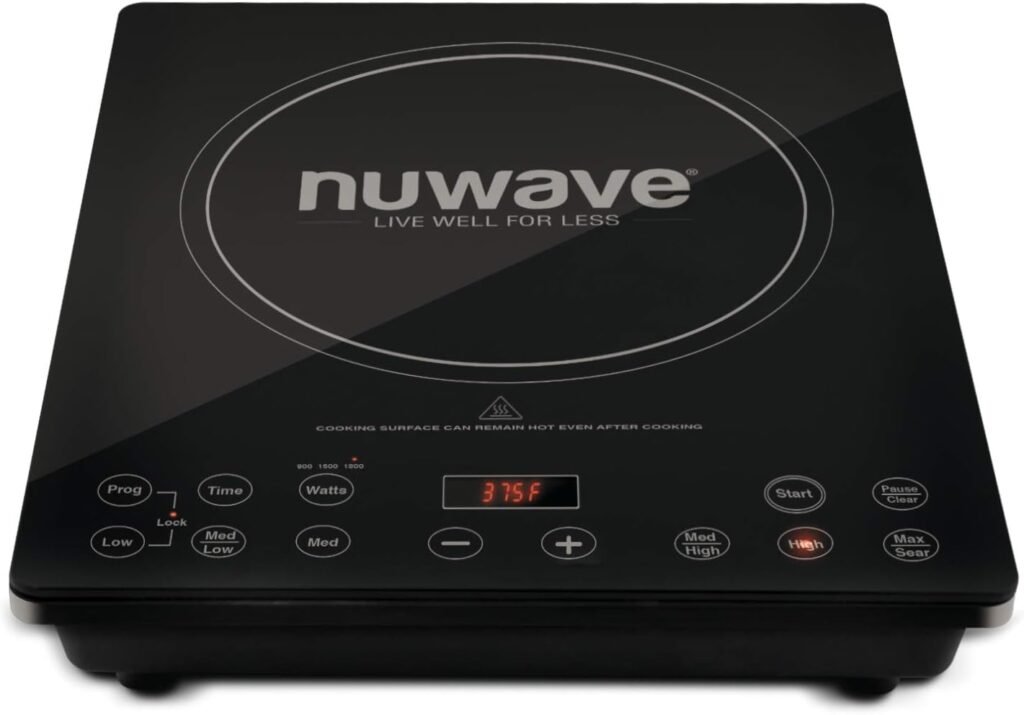 Nuwave Flex Precision Induction Cooktop, 10.25” Shatter-Proof Ceramic Glass, 6.5” Heating Coil, 45 Temps from 100°F to 500°F, 3 Wattage Settings 600, 900 & 1300 Watts, Black
